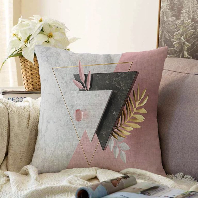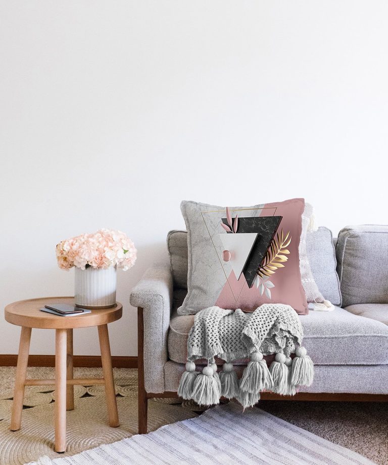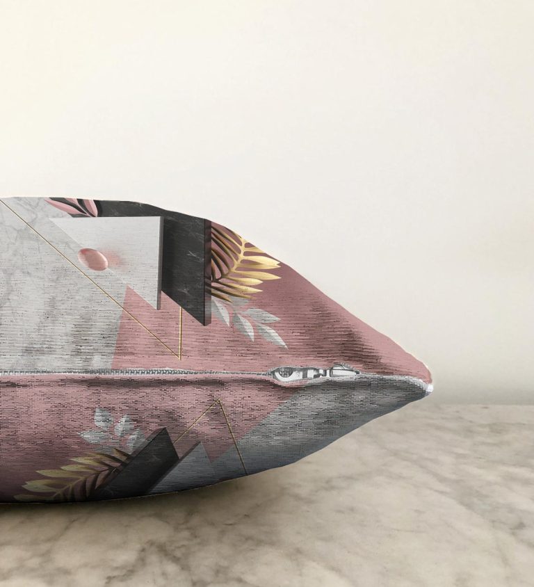 Modern Üçgen Mermer Desenli 3D Dijital Baskılı Raşel Yastık Kırlent Kılıfı