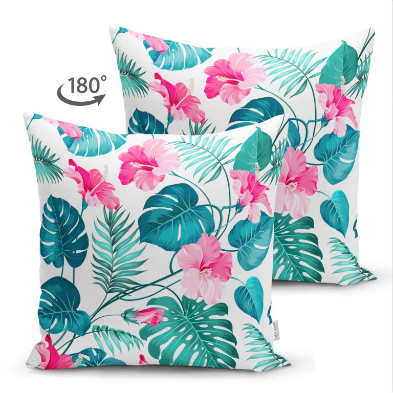 Modern Yaprak Desenli Dijital Baskılı Süet Yastık Kırlent Kılıfı