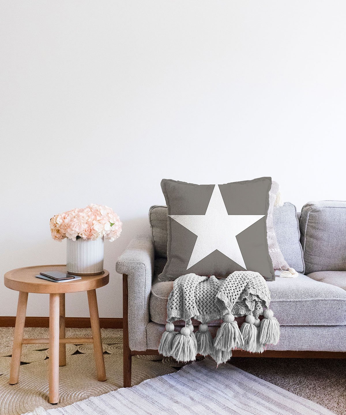 Modern Yıldız Desen Dijital Baskılı Dekoratif Raşel Yastık Kırlent Kılı
