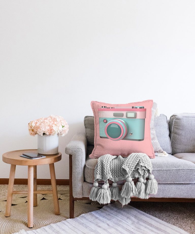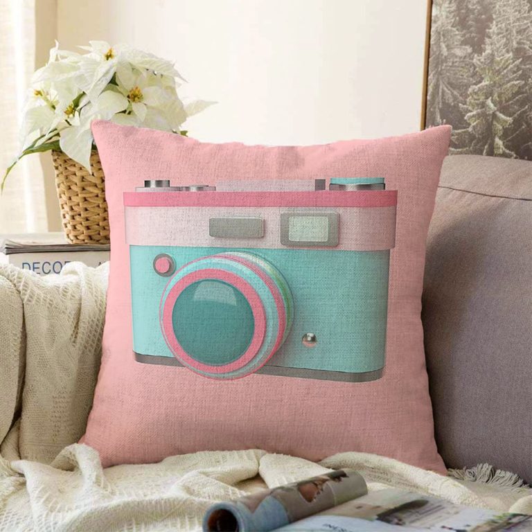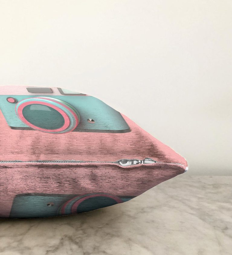 Nostaljik Fotoğraf Makinası 3D Dijital Baskılı Raşel Yastık Kırlent Kılıfı