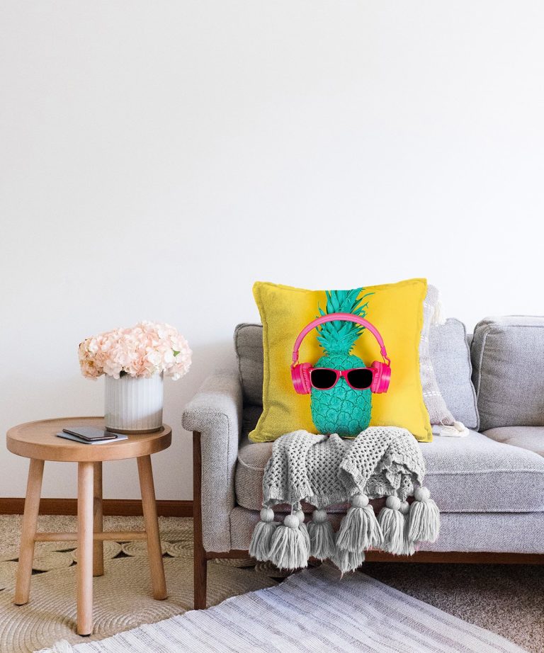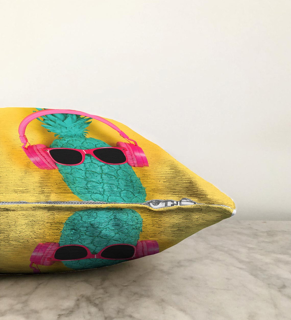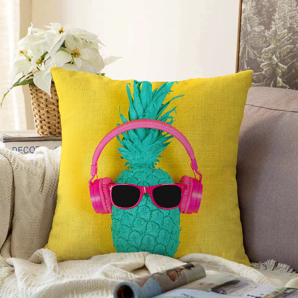 Sarı Zeminli Ananas Detaylı Modern Raşel Yastık Kırlent Kılıfı