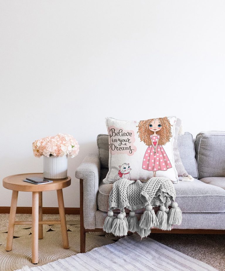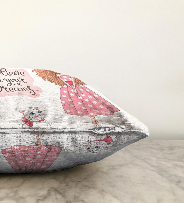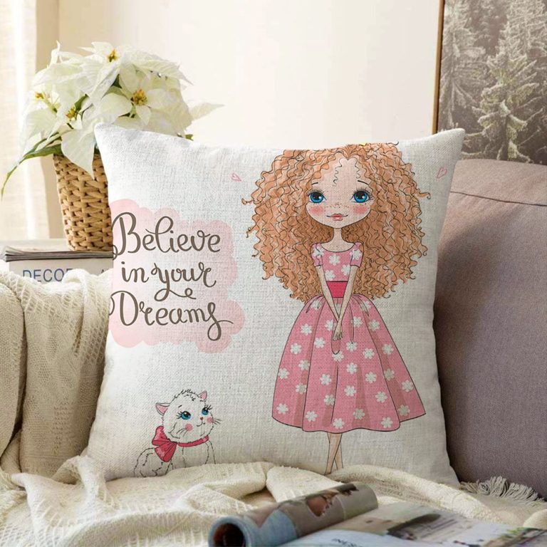 Sevimli Kız Motifli Dijital Baskılı Dekoratif Raşel Yastık Kırlent Kılıfı