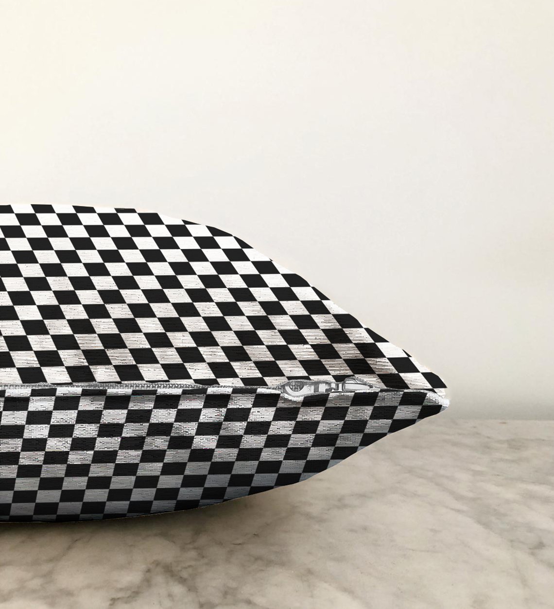 Siyah Beyaz Ekose Desenli Dekoratif Raşel Yastık Kırlent Kılıfı