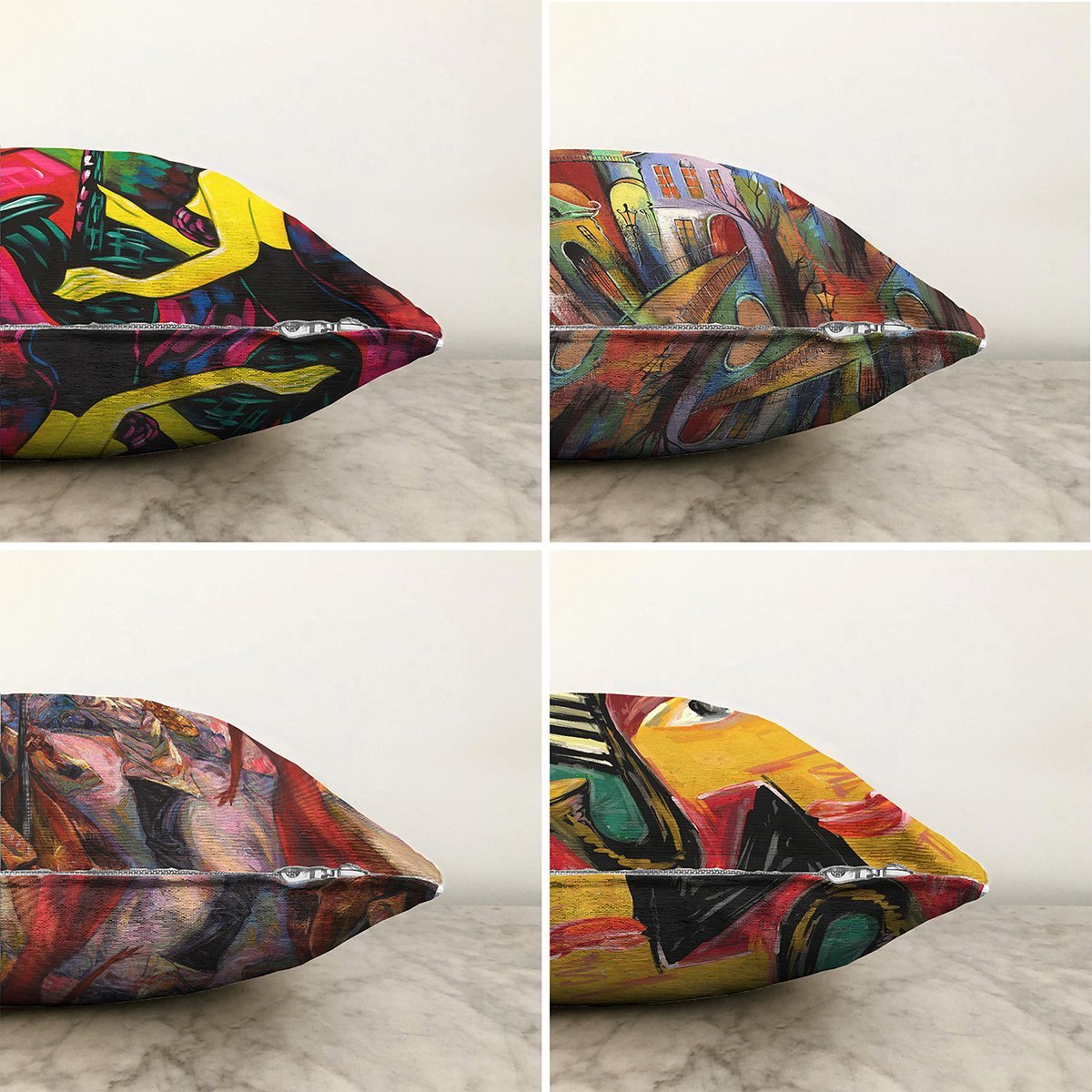 Soyut Sulu Boya Çalışması Tasarımlı 4’Lü Raşel Kadife Kırlent Kılıf Seti