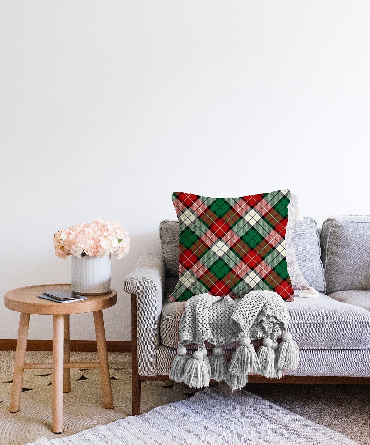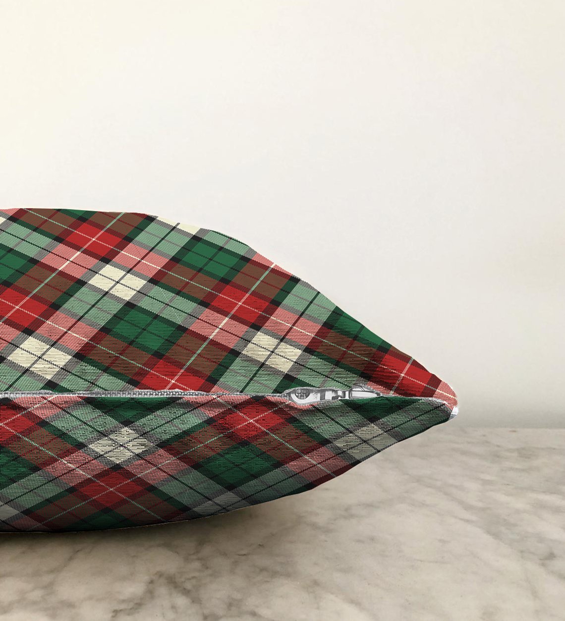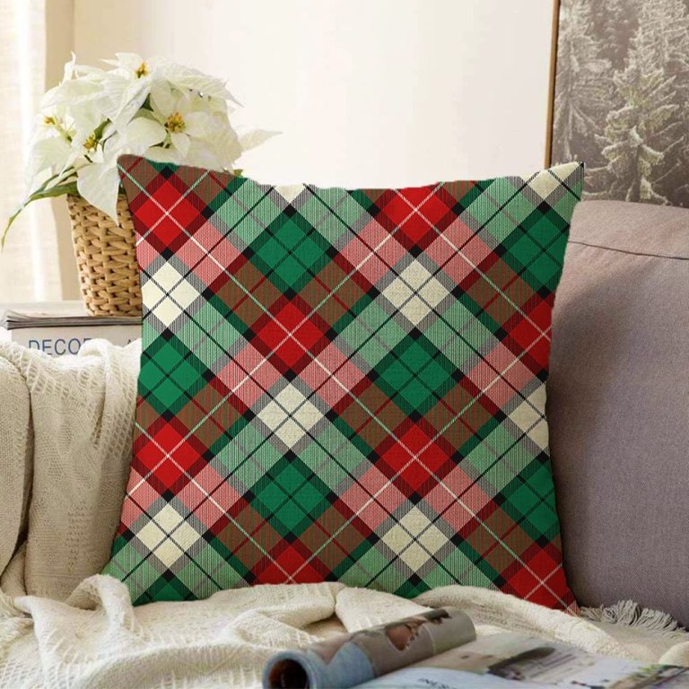 Yeşil Kırmızı Beyaz Ekose Desenli Dekoratif Raşel Yastık Kırlent Kılıfı