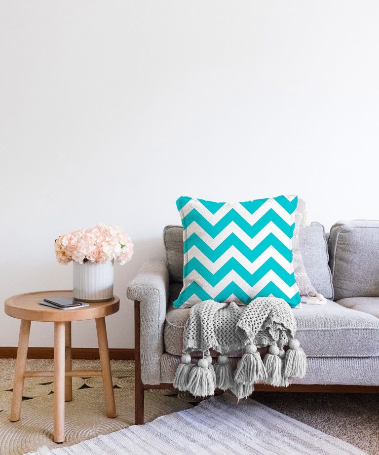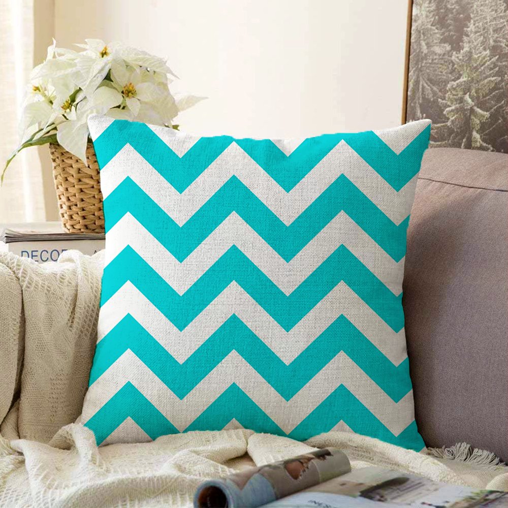 Zigzag Desen Dijital Baskılı Dekoratif Raşel Yastık Kırlent Kılıfı