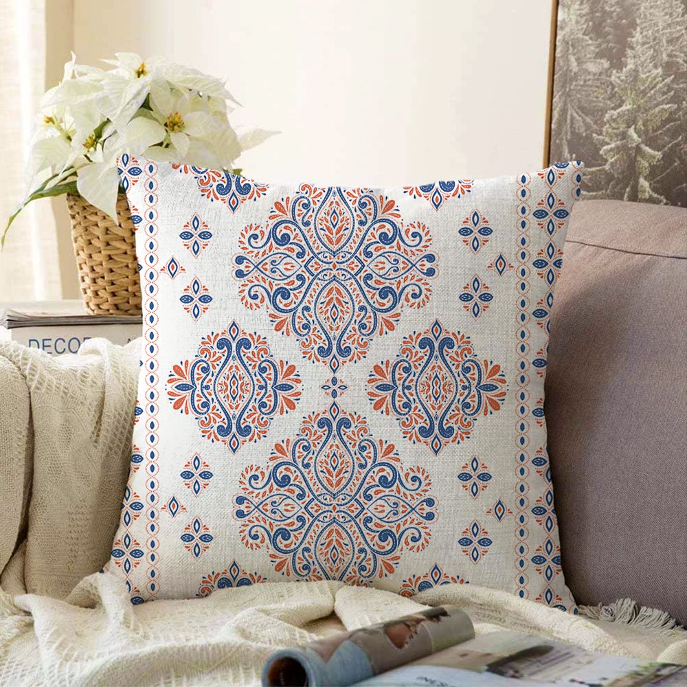 Çini Karo Motifli Dijital Baskılı Modern Raşel Yastık Kırlent Kılıfı