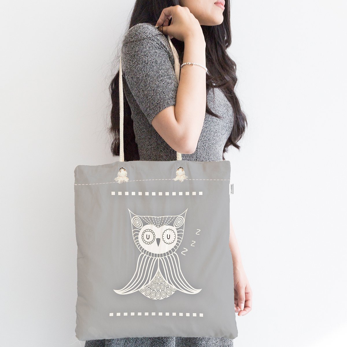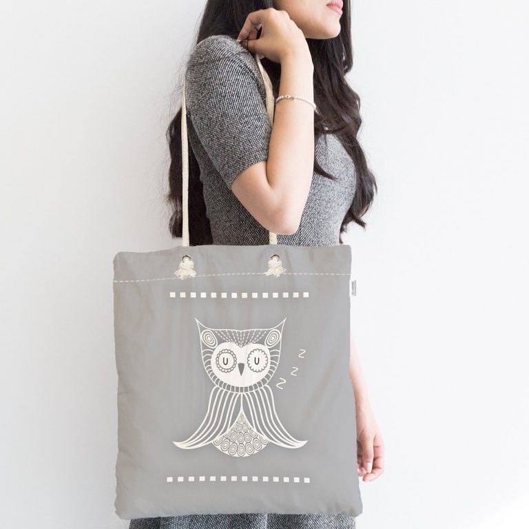 Çocuk Çantası – Gri Zeminde Baykuş Özel Tasarımlı Kumaş Çanta