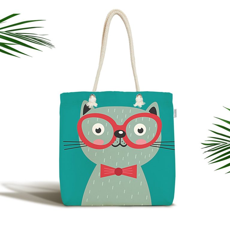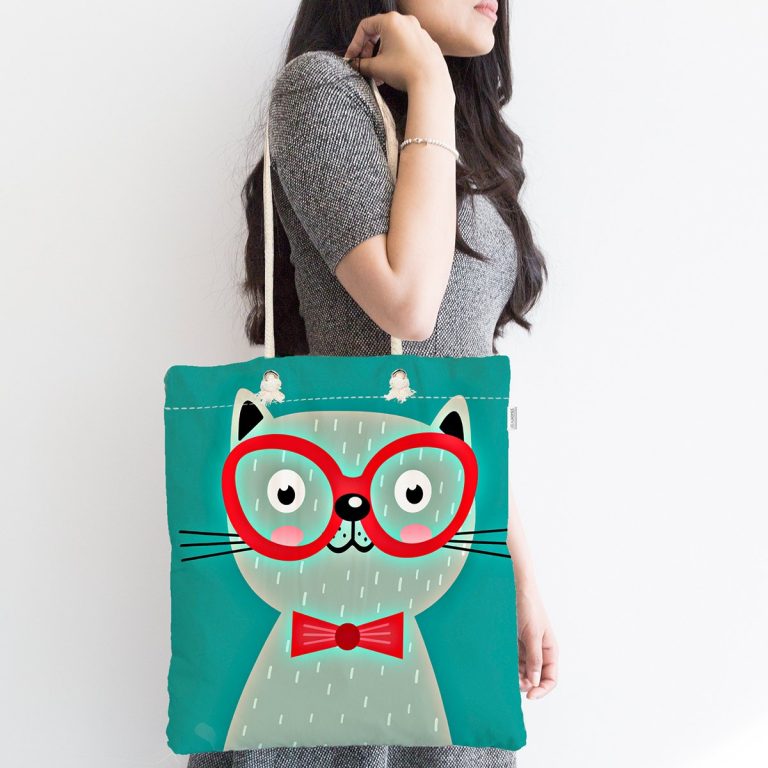 Çocuk Çantası – Renkli Kedi Dijital Baskılı Modern Kumaş Çanta
