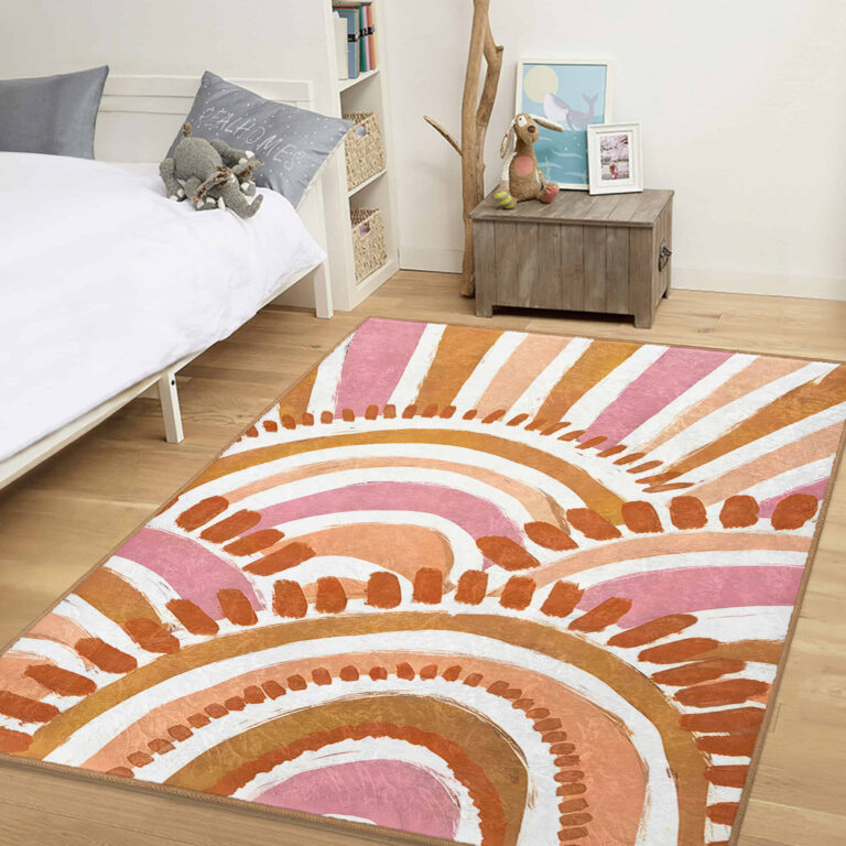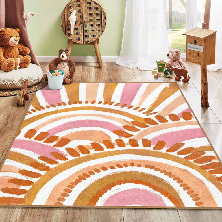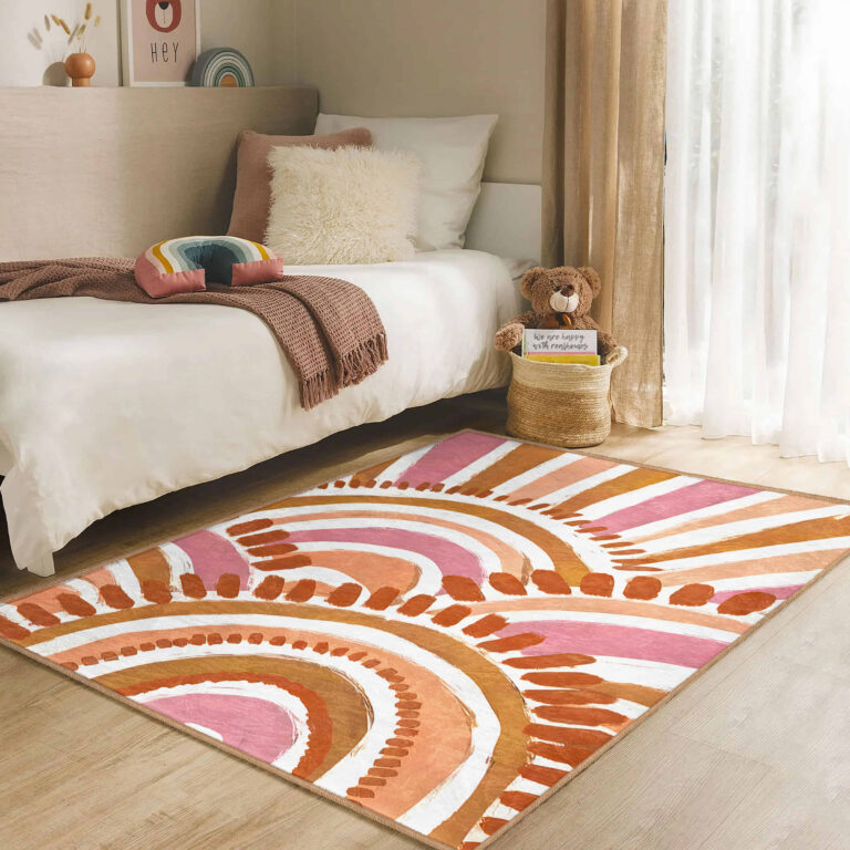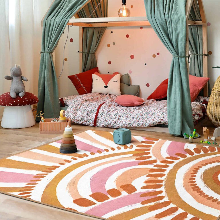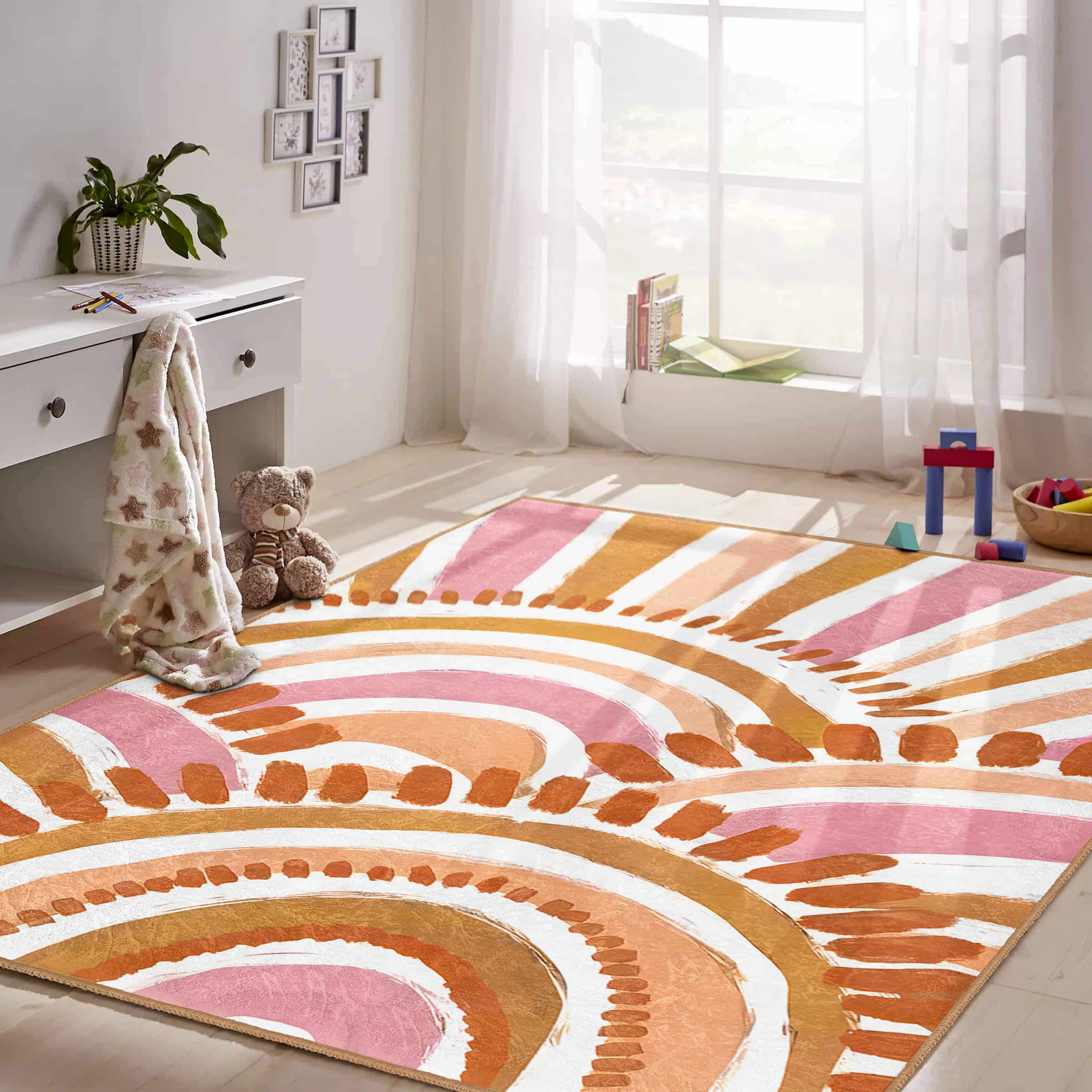 Çocuk Odası için Canlı Renklerde Jura Desenli Dikdörtgen Kaymaz Taban Halı – Makinede Yıkanabilir