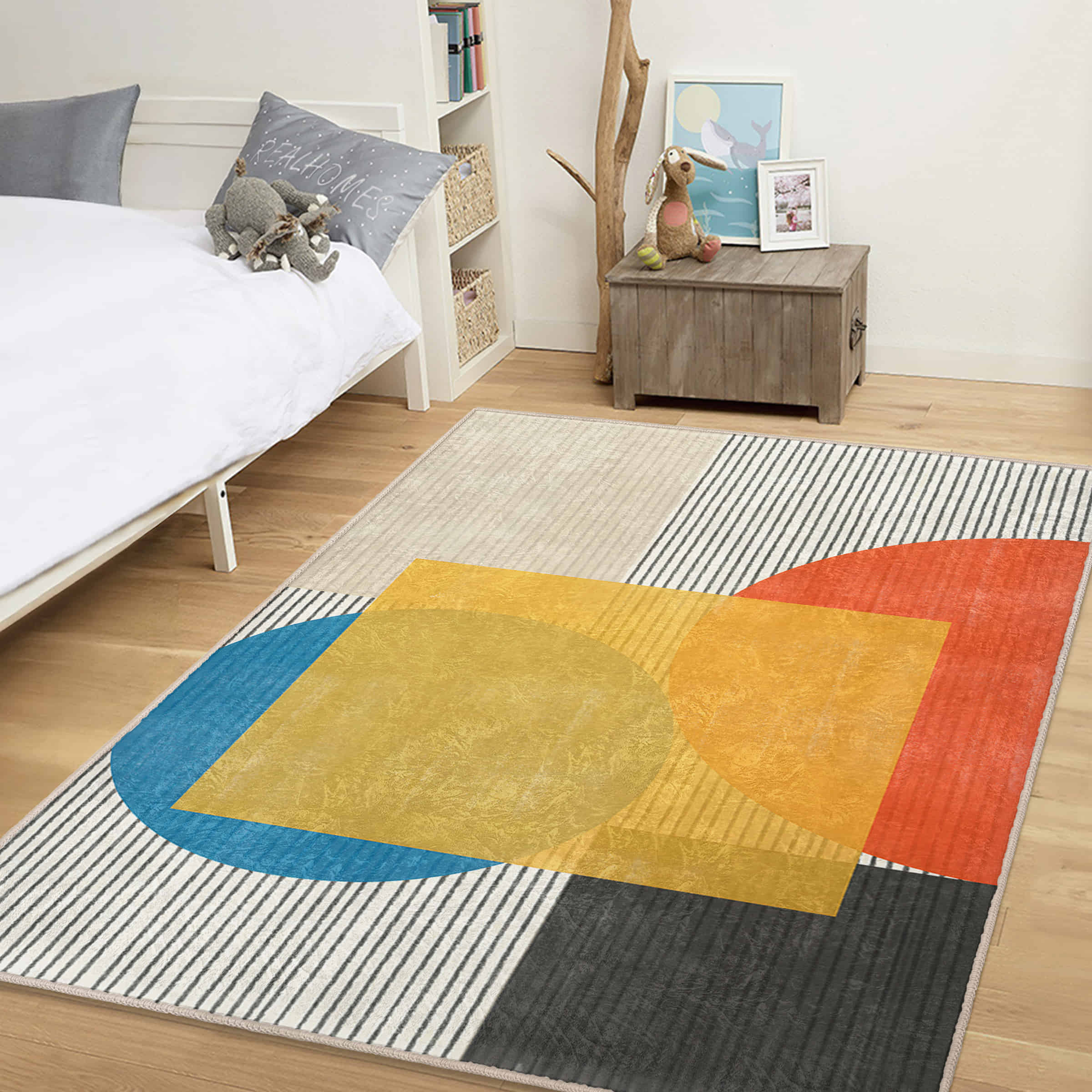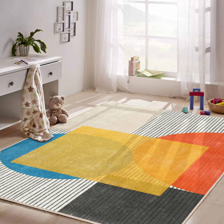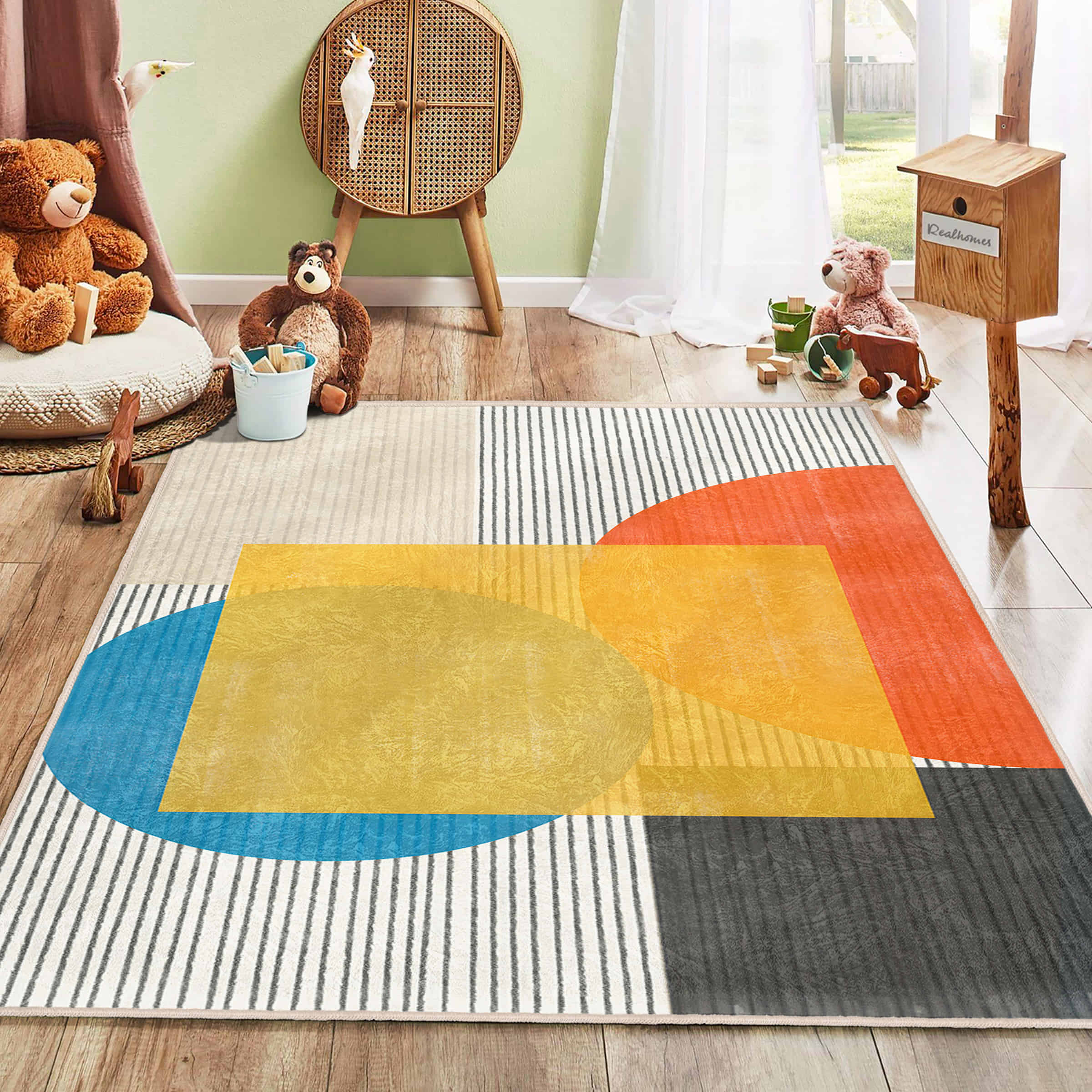 Çocuk Odası İçin Renkli Geometrik Desenli Dikdörtgen Yıkanabilir Kaymaz Taban Halı