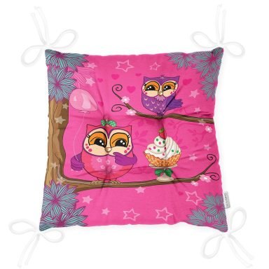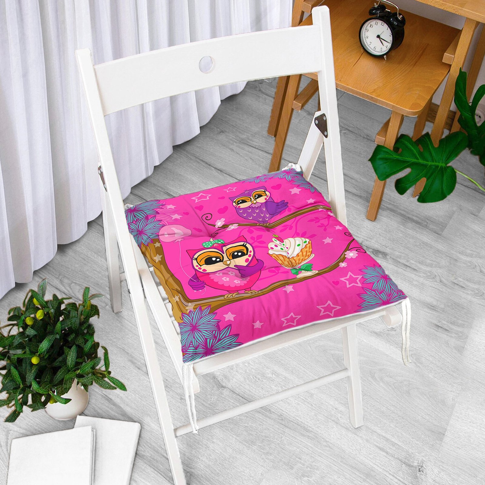 Çocuk Odası Pembe Baykuş Tasarımlı Pofidik Sandalye Minderi