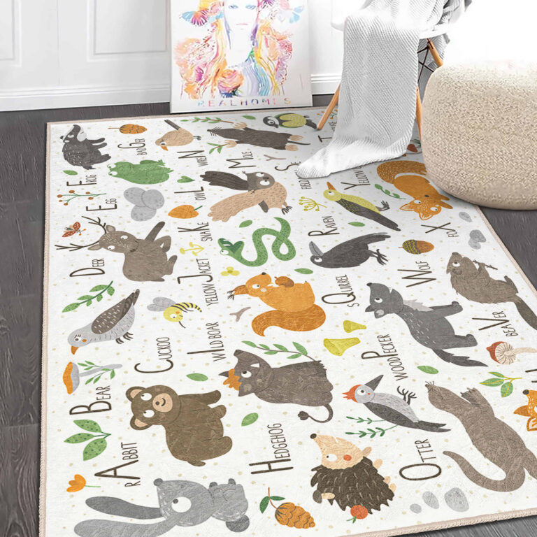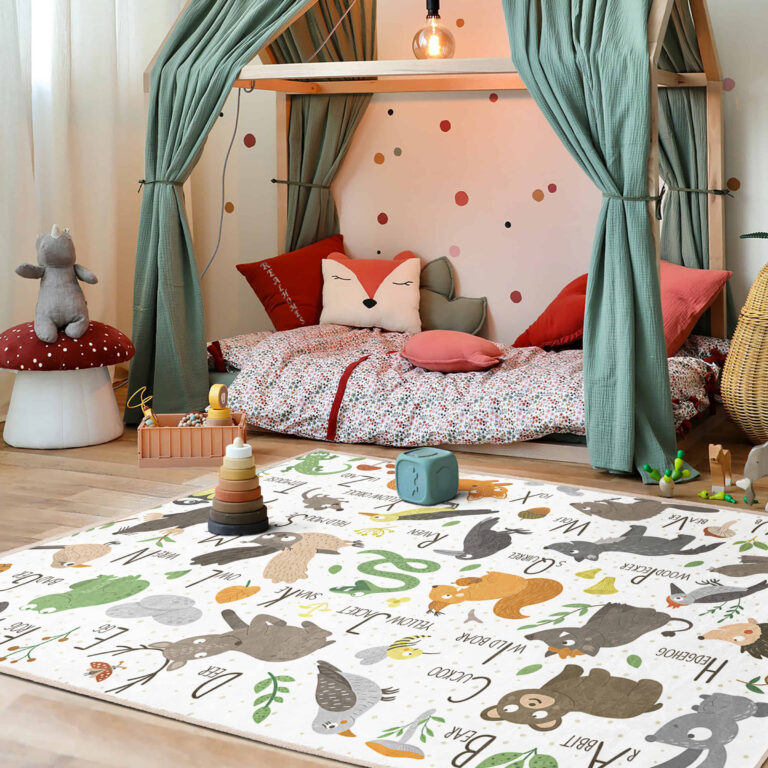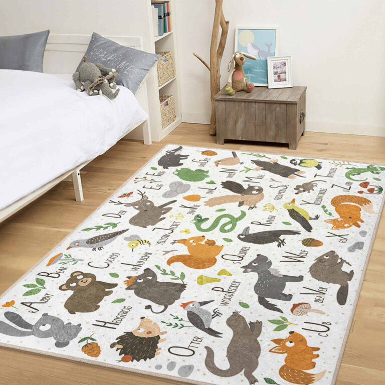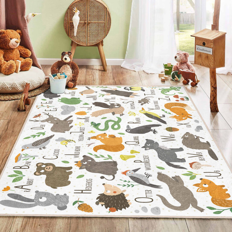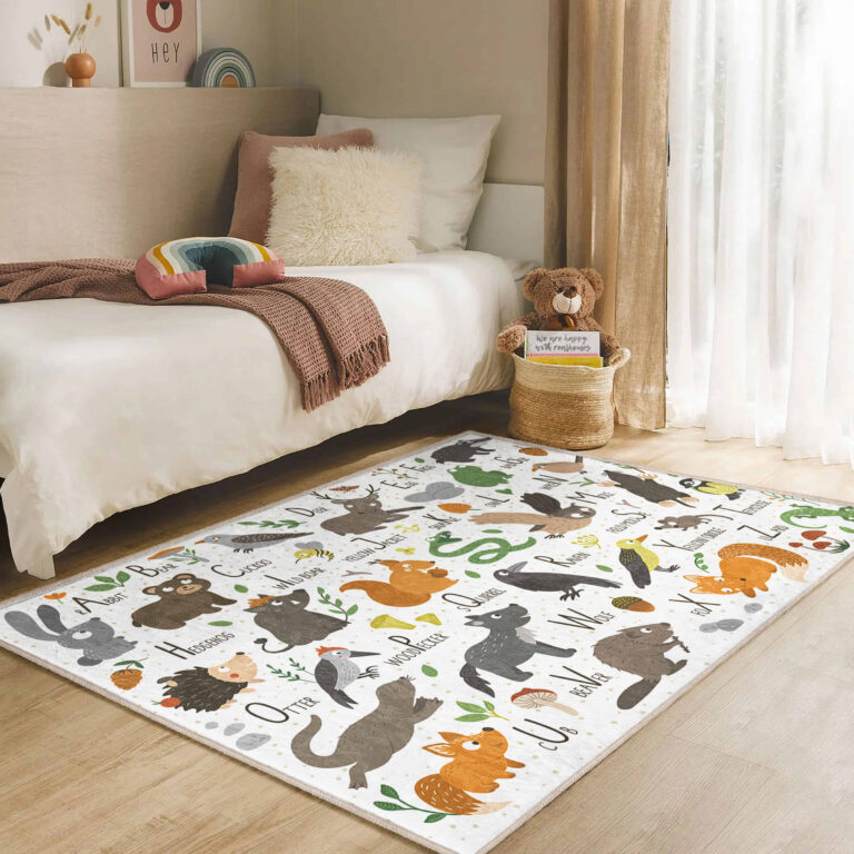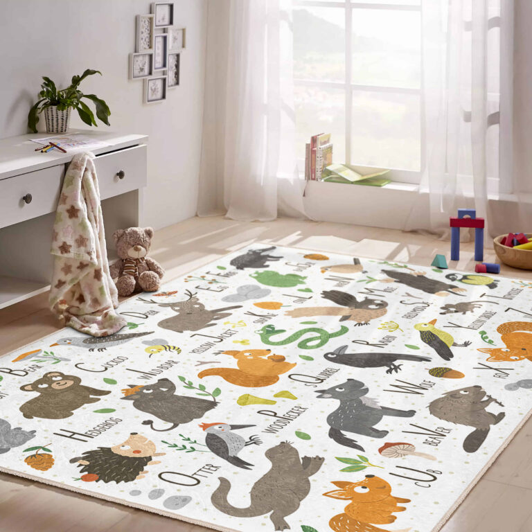 Çocuklar İçin Renkli Hayvan Temalı Sevimli Dikdörtgen Yıkanabilir Kaymaz Taban Halı