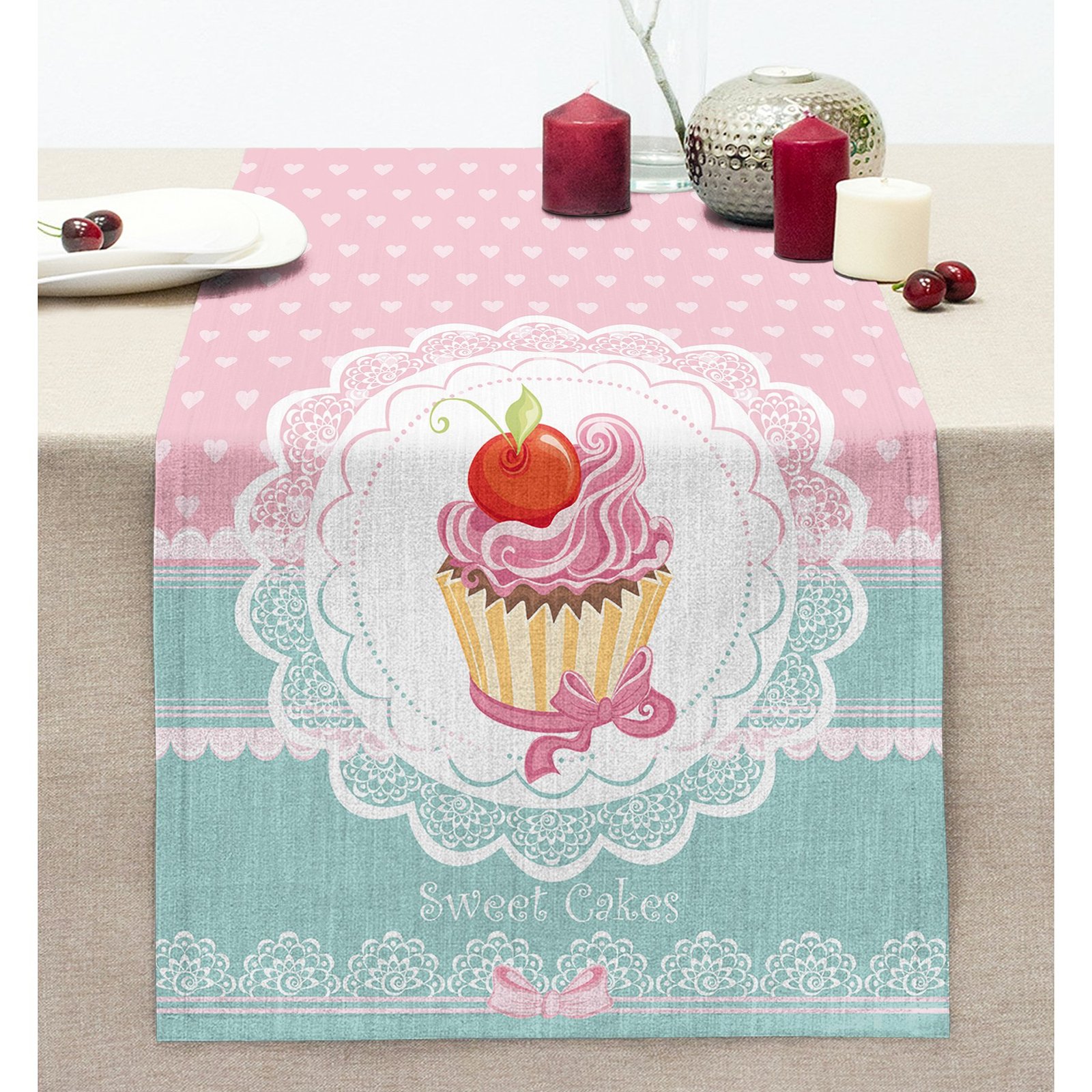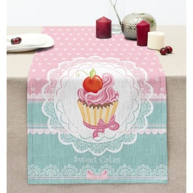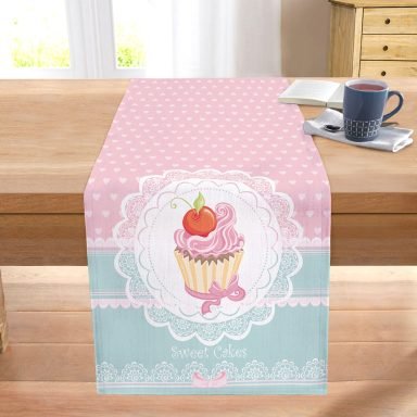 Cup Cake Dijital Baskılı Dekoratif Dikişli Şönil Runner