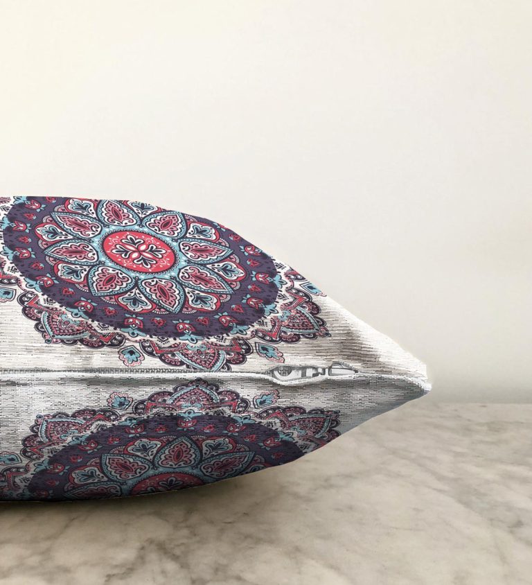 Daire Çini Desenli Dijital Baskılı Raşel Yastık Kırlent Kılıfı