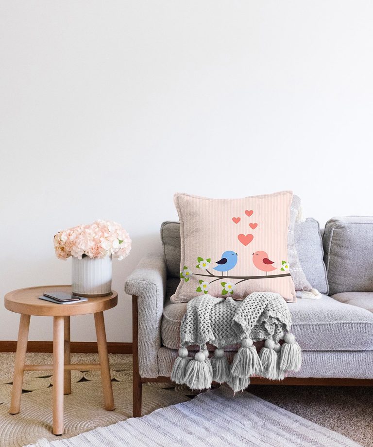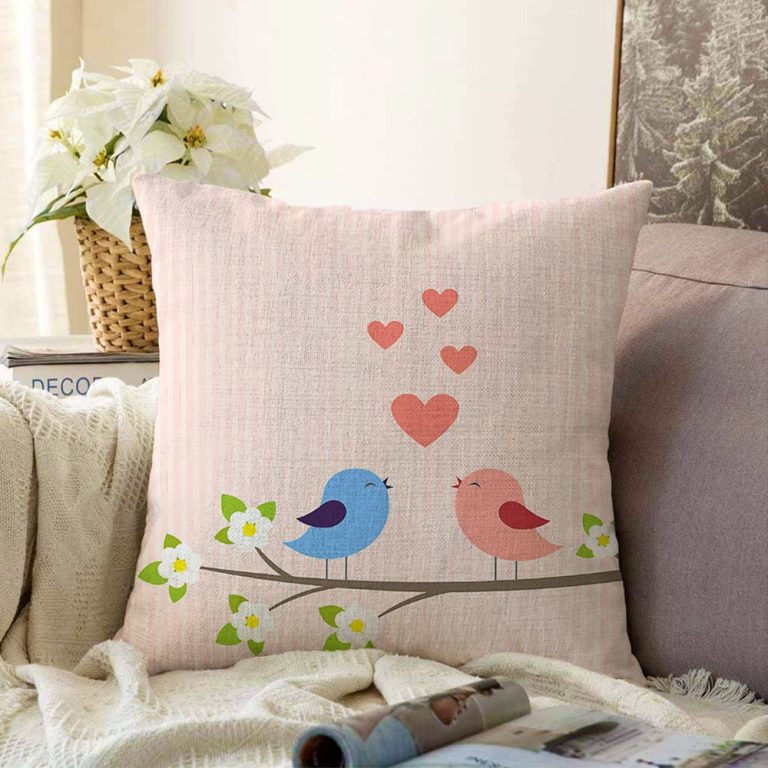Daldaki Kuşlar Temalı Dijital Baskılı Modern Raşel Kırlent Kılıfı