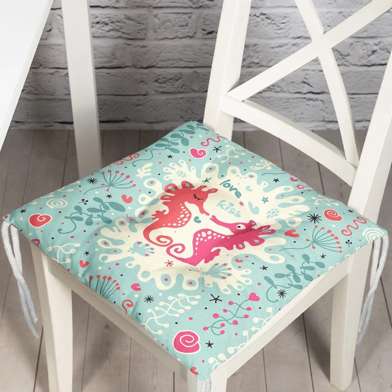 Deniz Atı Desenli Dijital Baskılı Pofidik Kare Sandalye Minderi