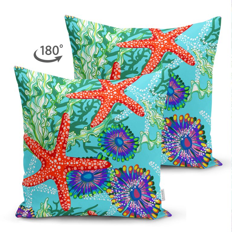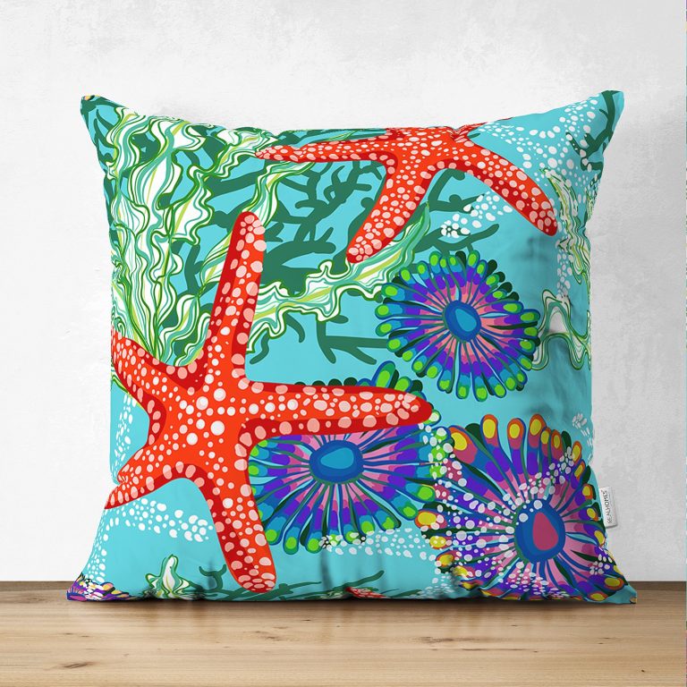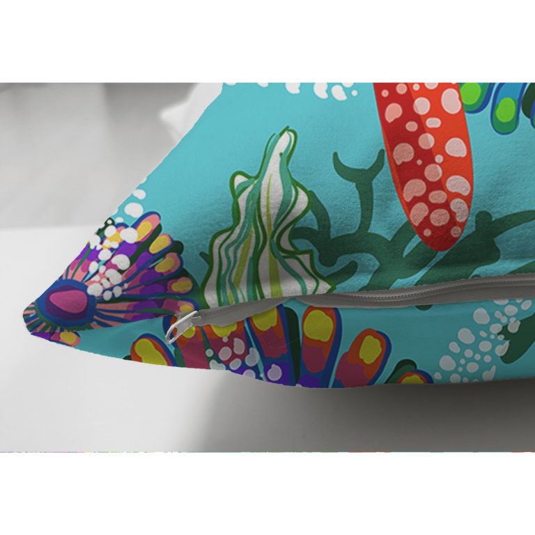 Deniz Canlıları Özel Tasarım Dijital Baskılı Modern Kumaş Süet Yastık Kırlent Kılıfı