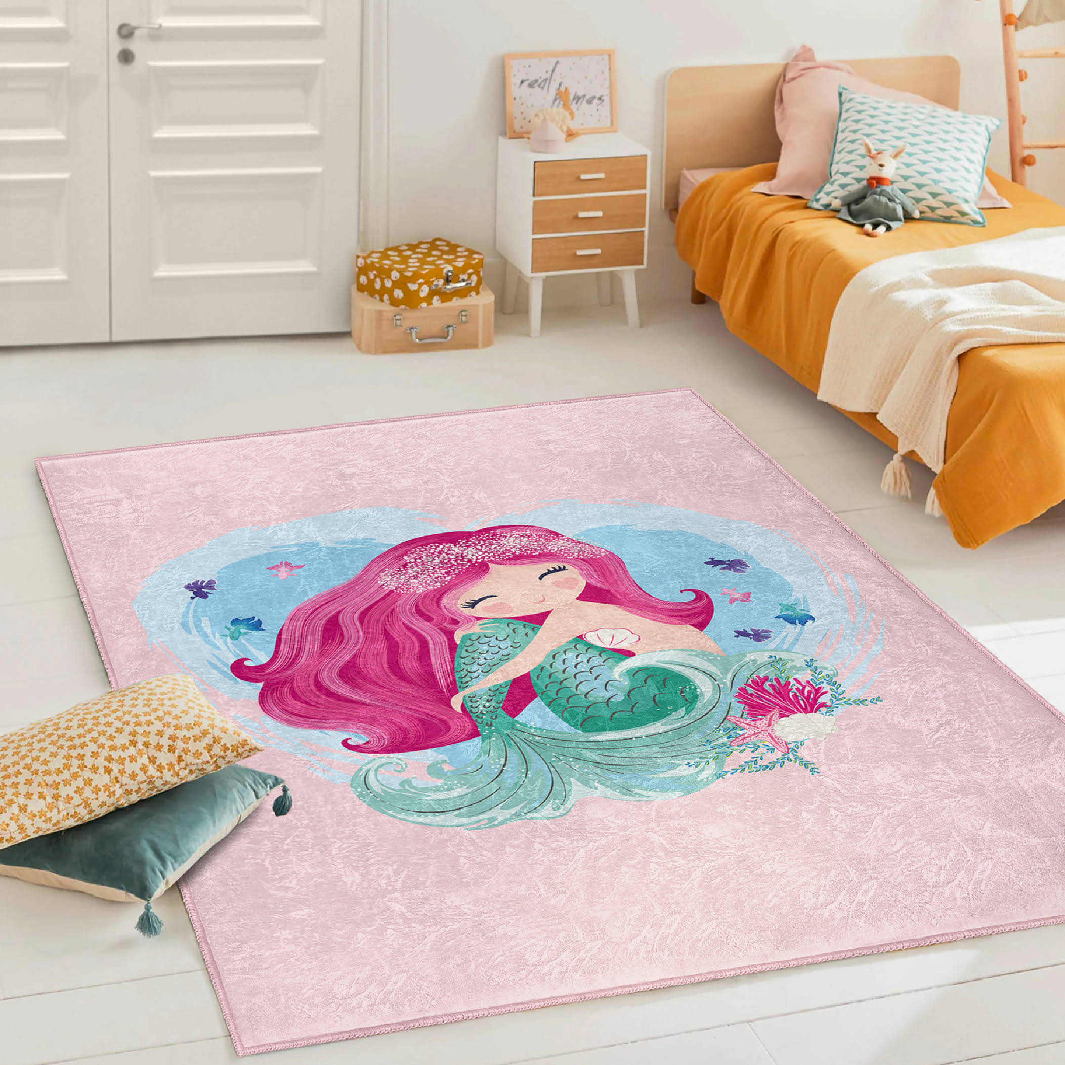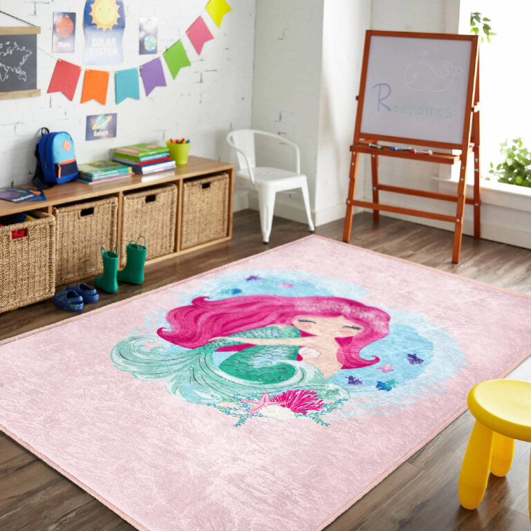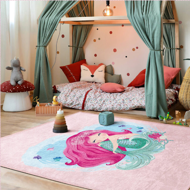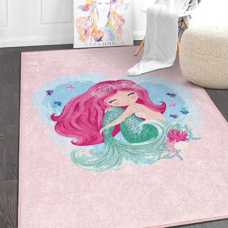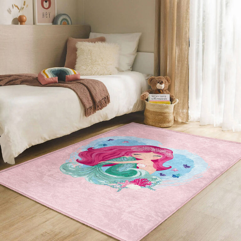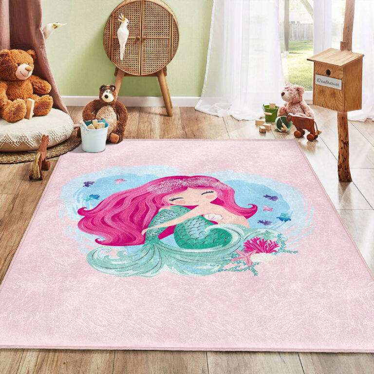 Deniz Kızı Temalı Renkli Dikdörtgen Çocuk Halısı – Yıkanabilir ve Kaymaz Tabanlı
