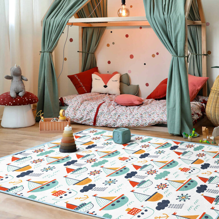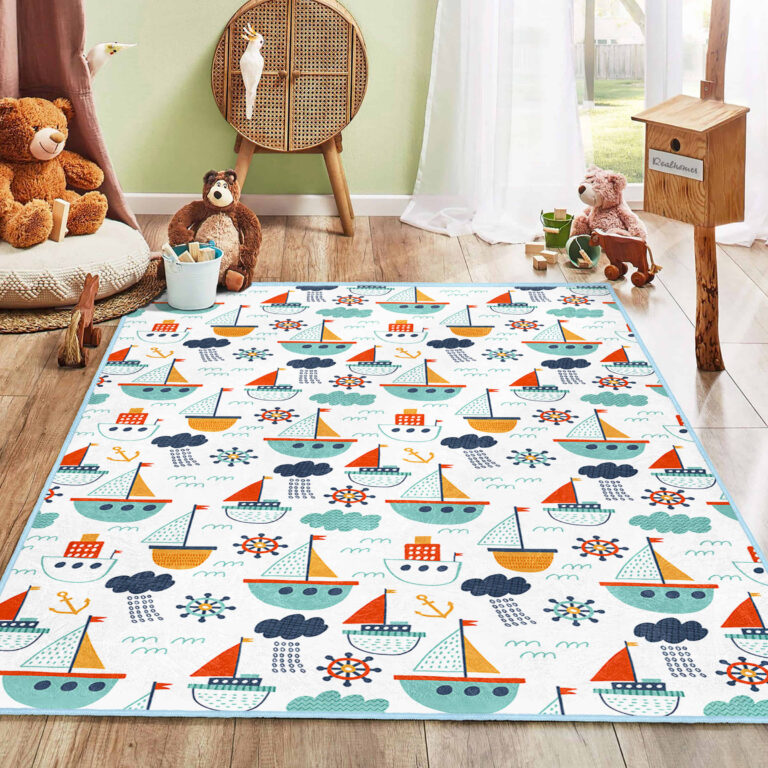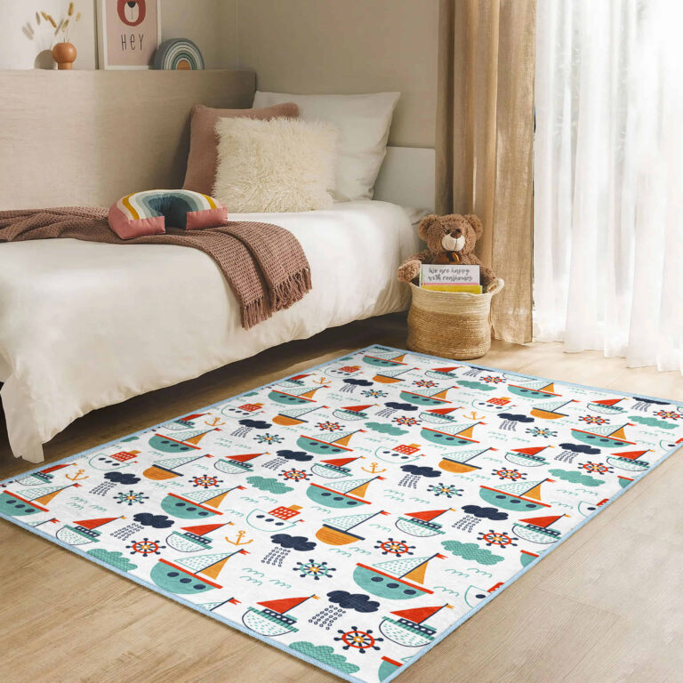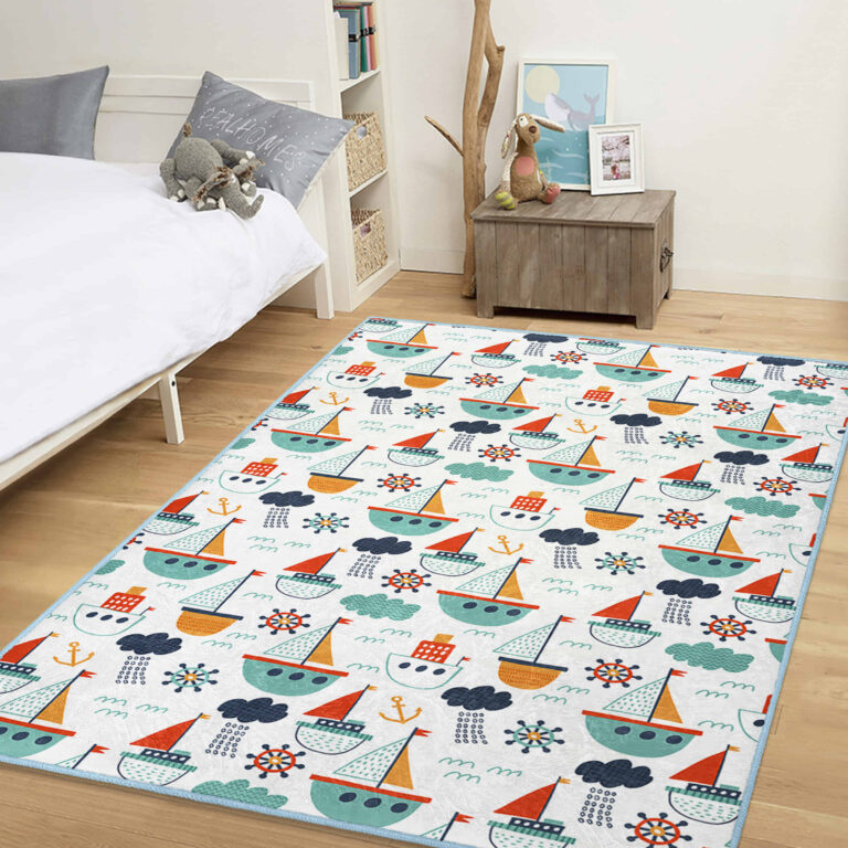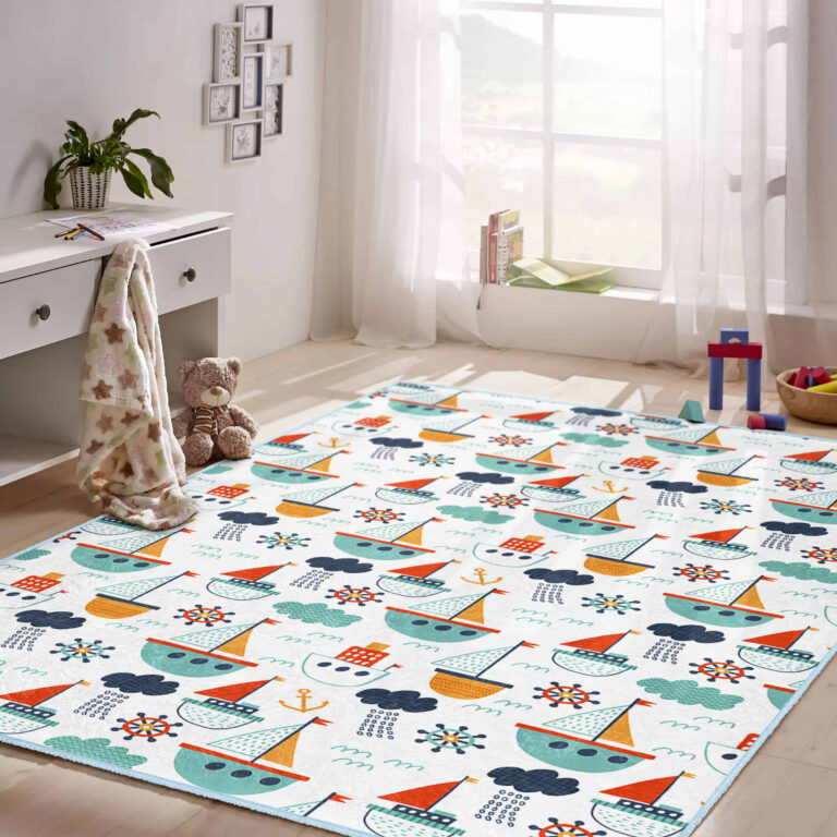 Deniz Temalı Çocuk Halısı: Eğlenceli Yelkenli Gemilerle Tasarlanmış Kaymaz Tabanlı Yıkanabilir Halı