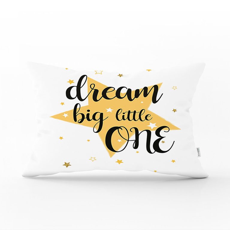 Dream Big Little One Yazılı Yıdız Desenli Dijital Baskılı Dikdörtgen Kırlent Kılıfı