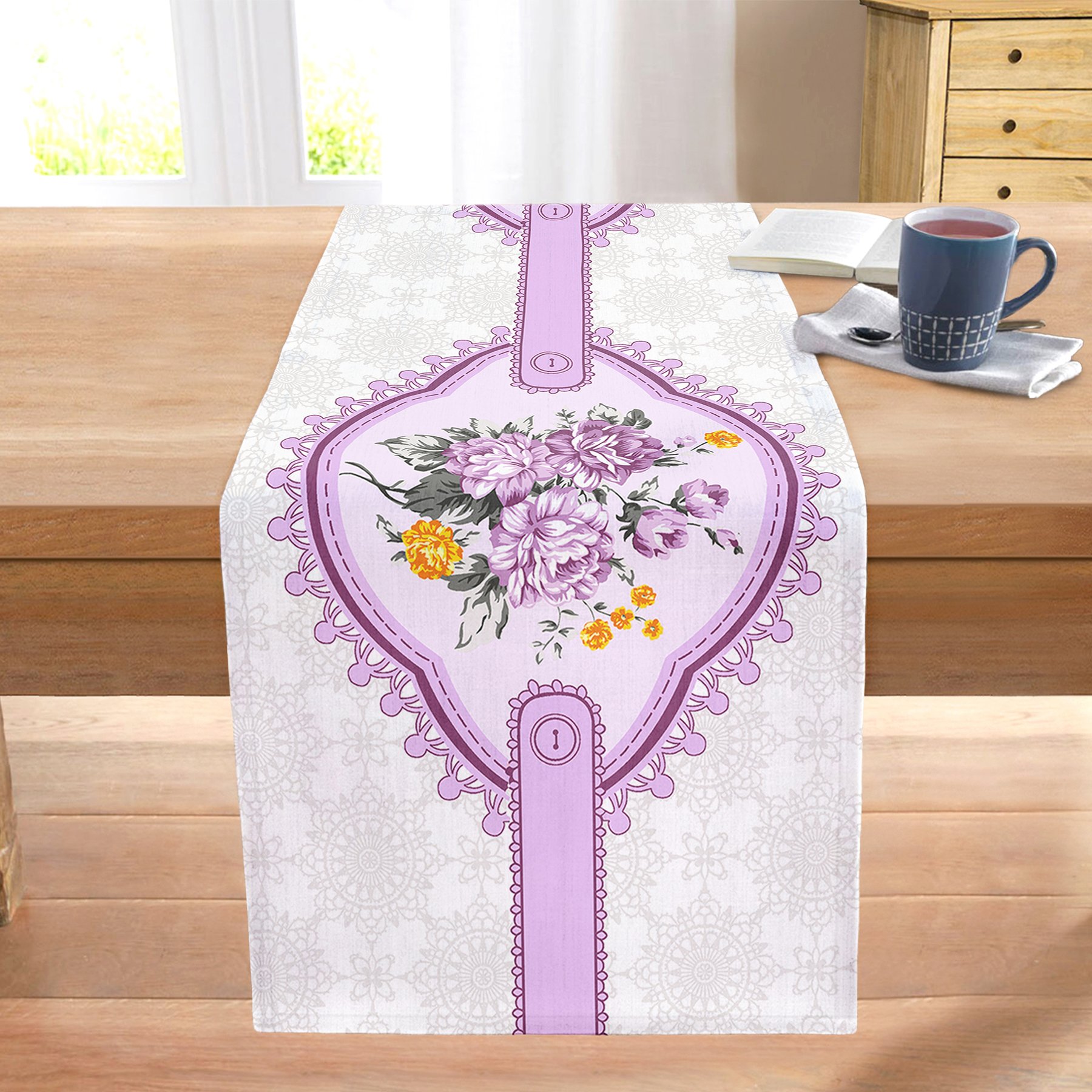 Eflatun Gül Tasarımlı Dijital Baskılı Modern Dikişli Şönil Runner