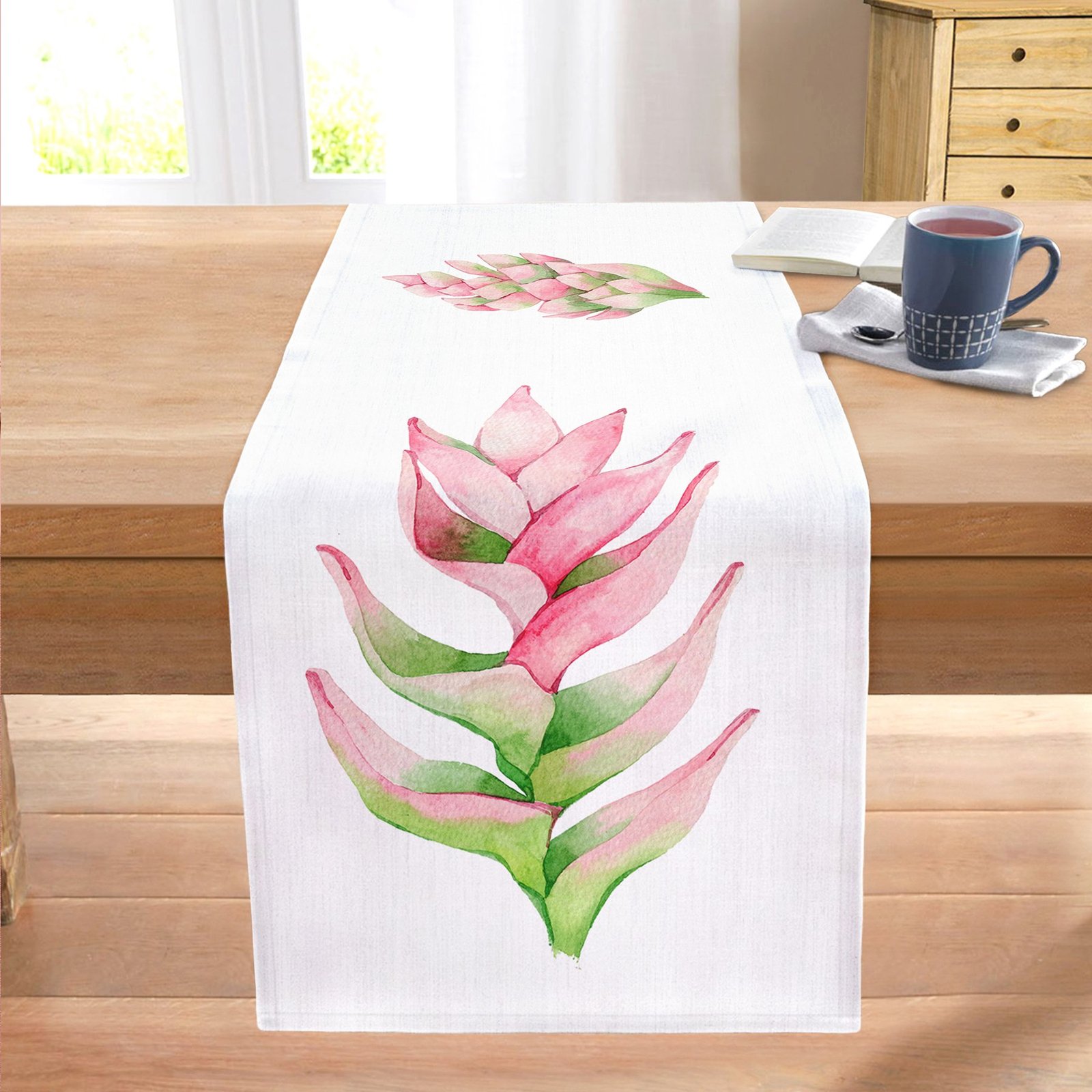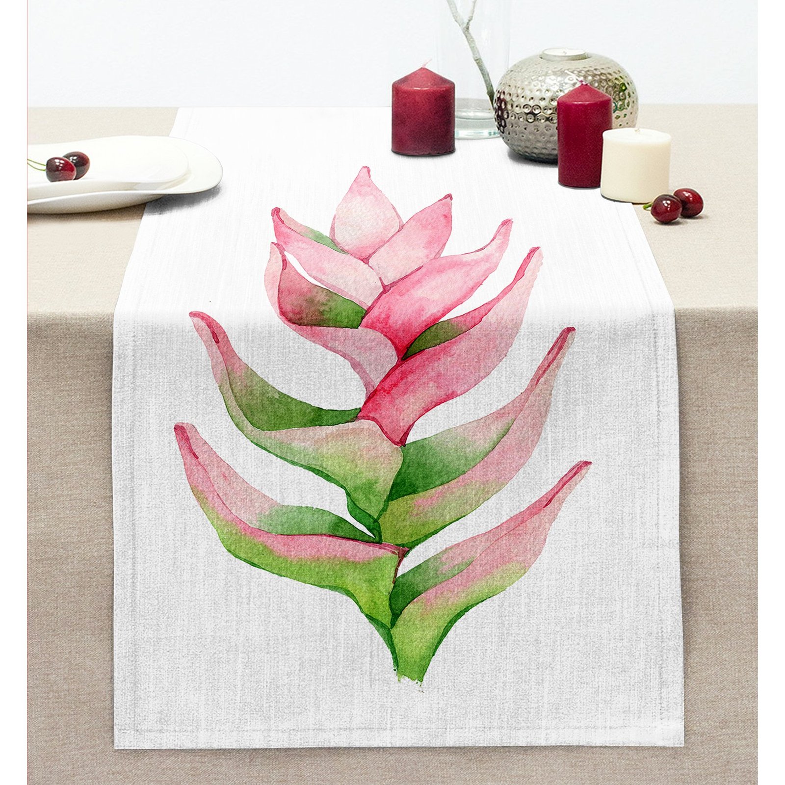 Egzotik Yaprak Tasarımlı Dijital Baskılı Dekoratif Dikişli Şönil Runner