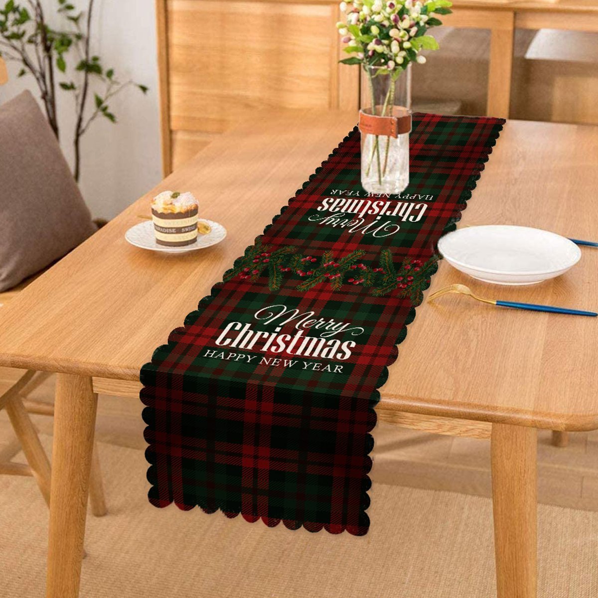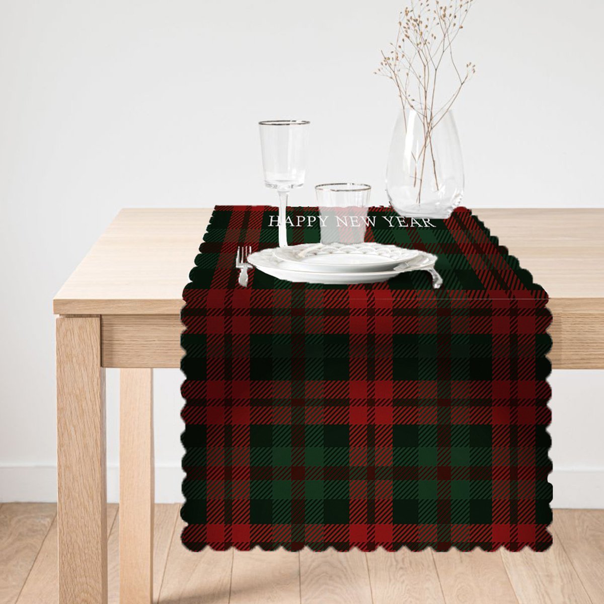 Ekose Zeminde Merry Christmas Baskılı Dekoratif Özel Tasarım Runner