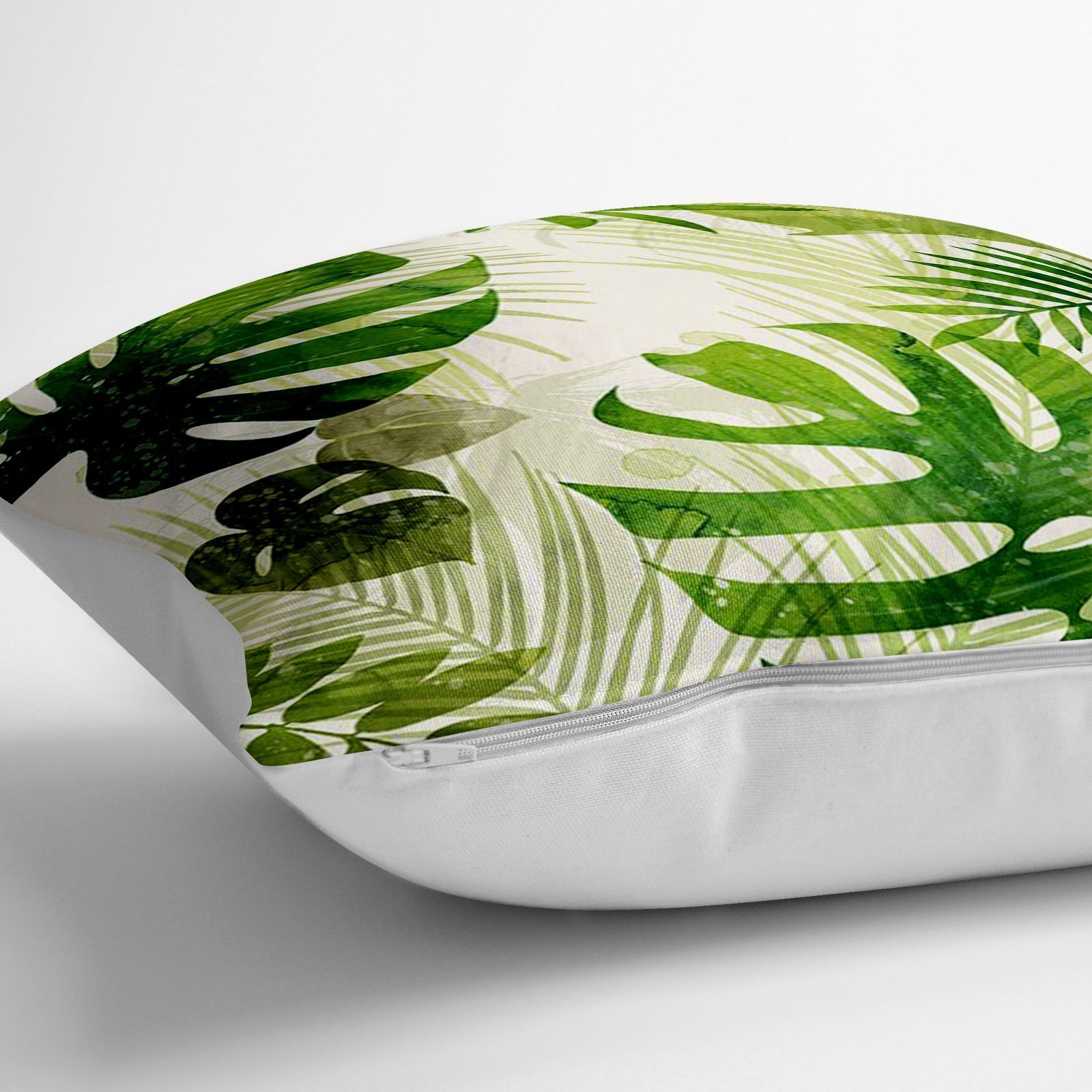 Ekru Zeminde Amazon Yaprakları Özel Tasarım Yer Minderi – 70 x 70 cm