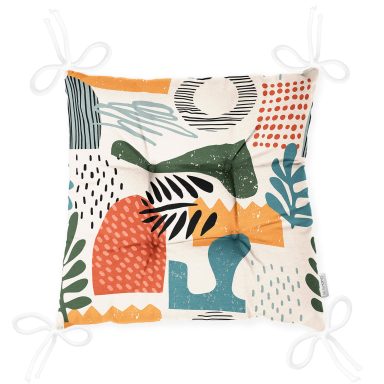 Ekru Zeminde Sanatsal Motifler Dijital Baskılı Modern Pofidik Sandalye Minderi