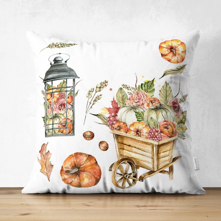 El Arabası Meyve & Sebze Çizimli Dijital Baskılı Modern Süet Yastık Kırlent Kılıfı