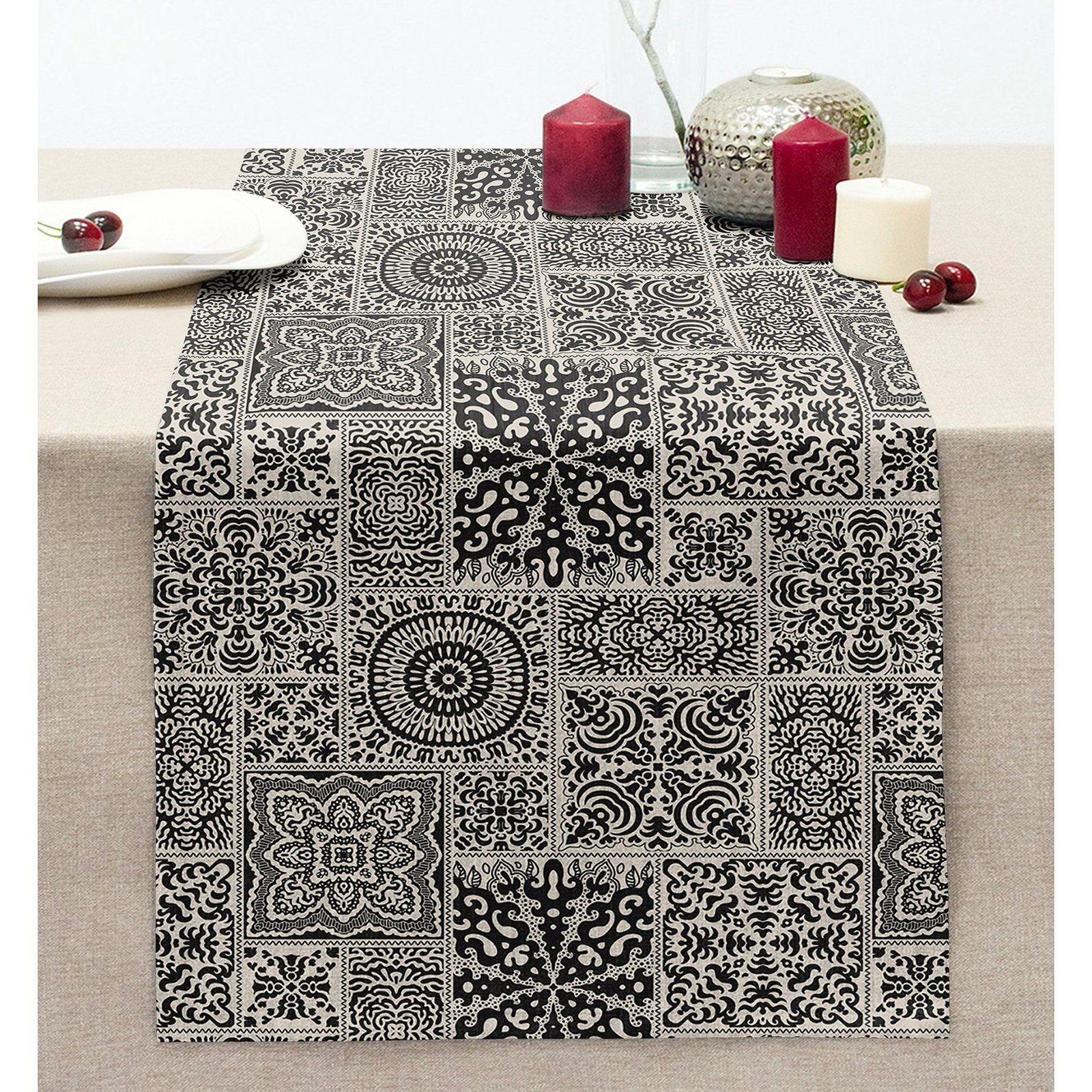 Eskitme Kareli Özel Tasarım Dijital Baskılı Dikişli Şönil Runner