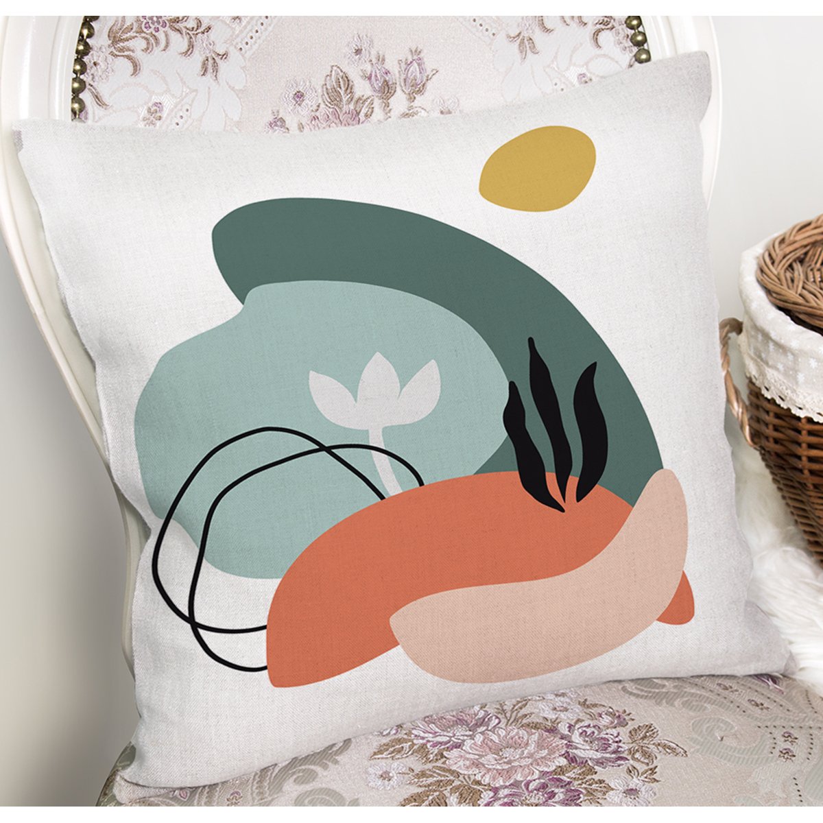 Estetik Tasarımlı Geometrik Şekiller Dijital Baskılı Modern Yastık Kırlent Kılıfı