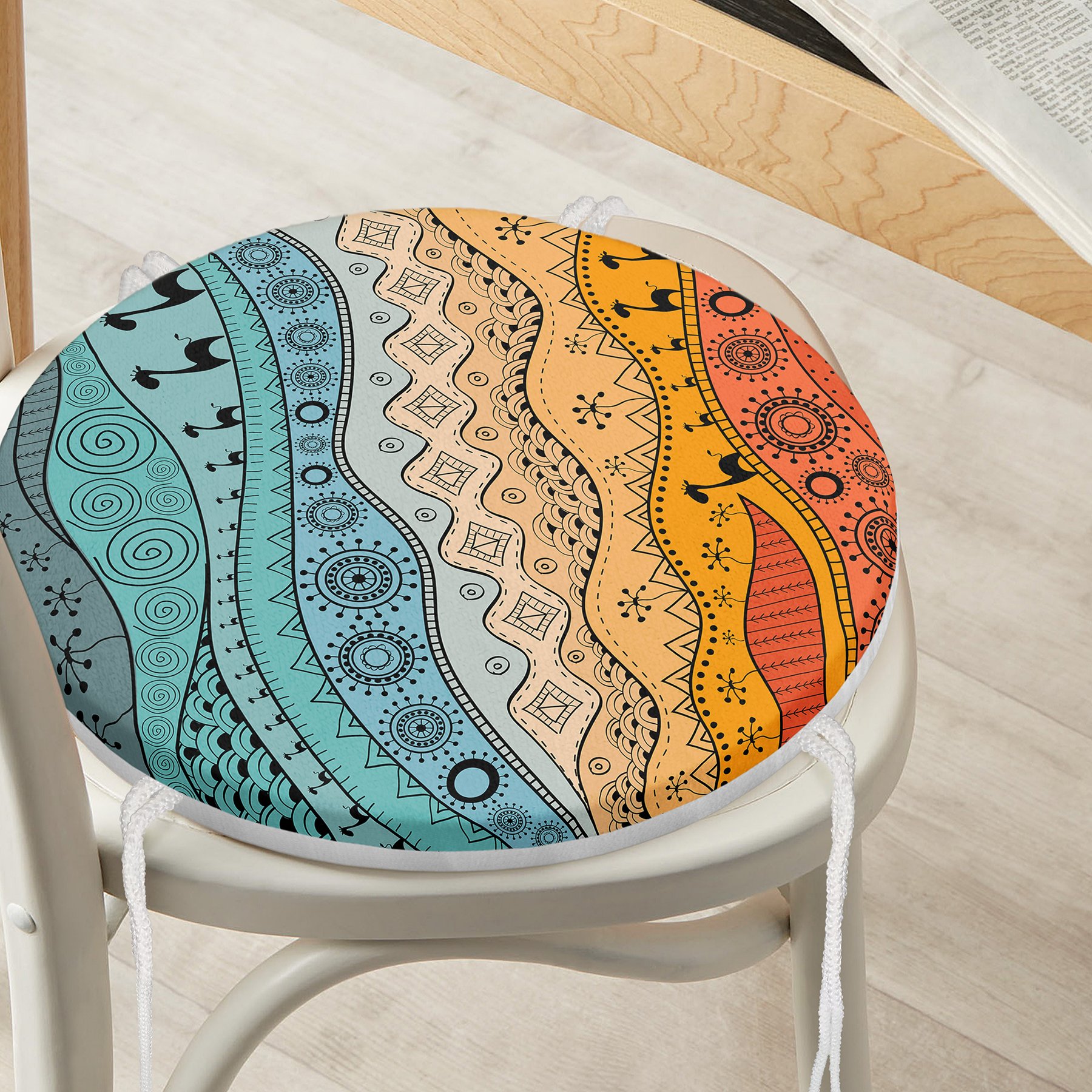 Etnik Desen Tasarımlı Dijital Baskılı Modern Yuvarlak Fermuarlı Sandalye Minderi