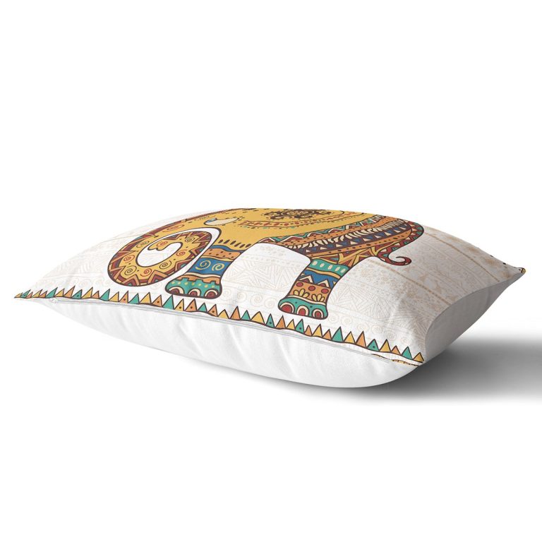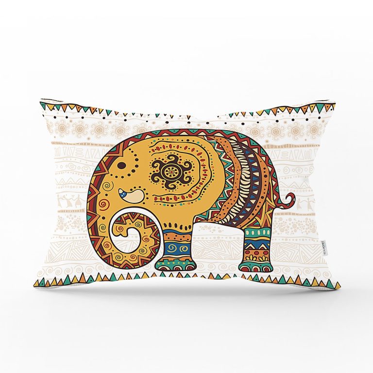 Etnik Figürlü Fil Desenli Dijital Baskılı Dekoratif Dikdörtgen Kırlent Kılıfı