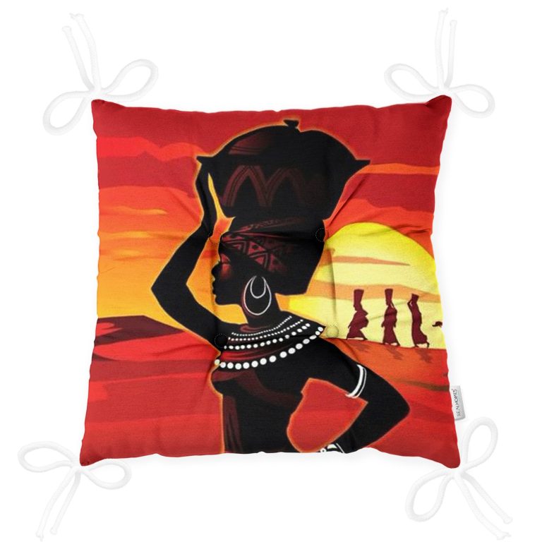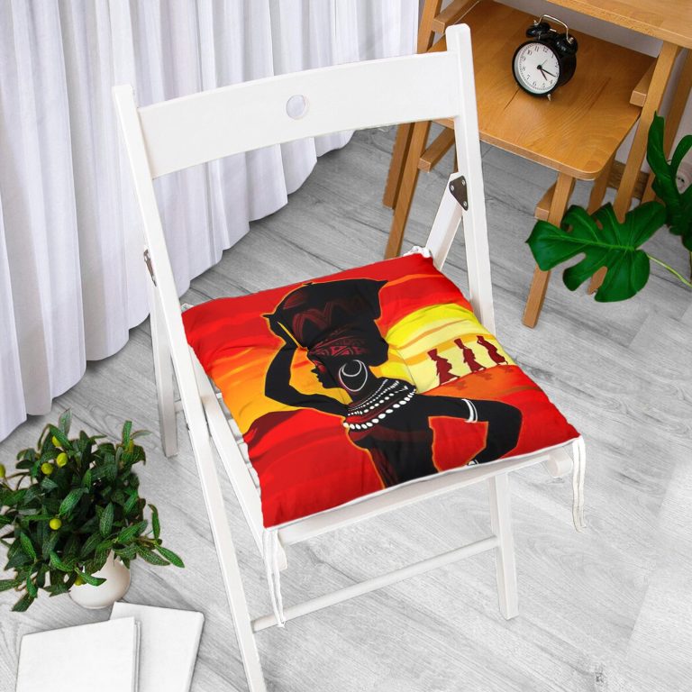 Etnik Siyahi Kadın Temalı Dijital Baskılı Pofidik Sandalye Minderi