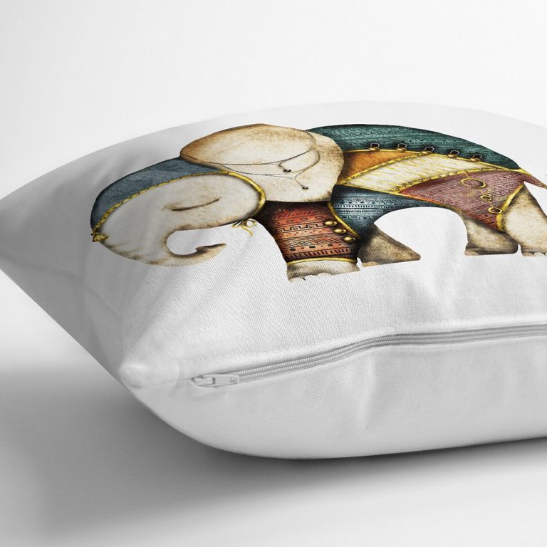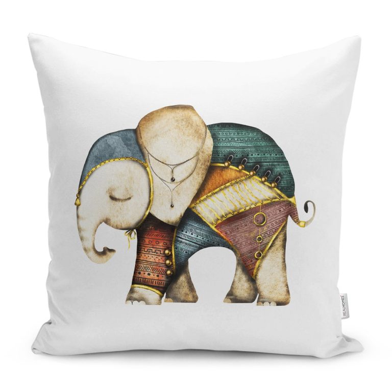 Etnik Tasarımlı Fil Desenli Dijital Baskılı Yastık Kırlent Kılıfı