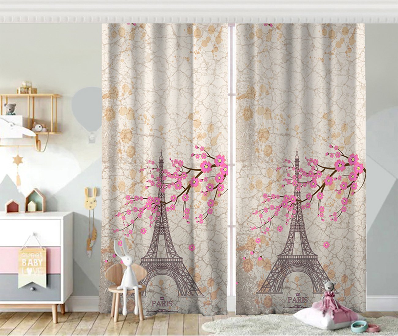 Eyfel Kulesi Resimli Dijital Baskılı Fon Perde
