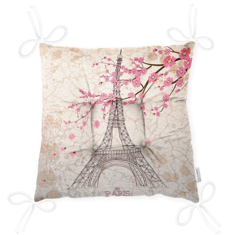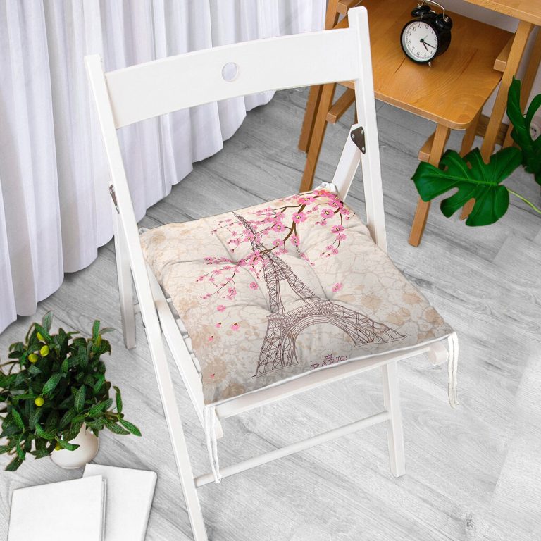 Eyfel Kulesi Resimli Dijital Baskılı Pofidik Sandalye Minderi