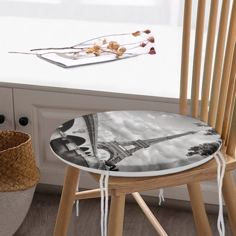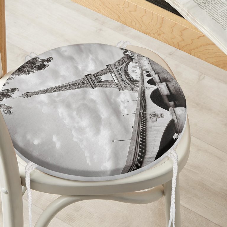 Eyfel Kulesi Tasarımlı Dijital Baskılı Yuvarlak Fermuarlı Sandalye Minderi