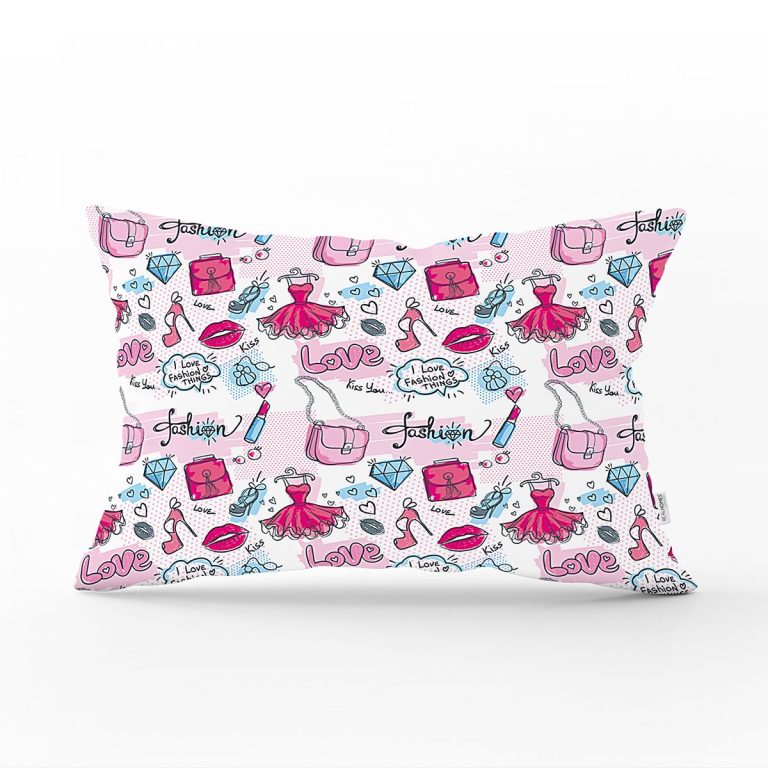 Fashion Aksesuar Desenli Dijital Baskılı Dikdörtgen Yastık Kırlent Kılıfı