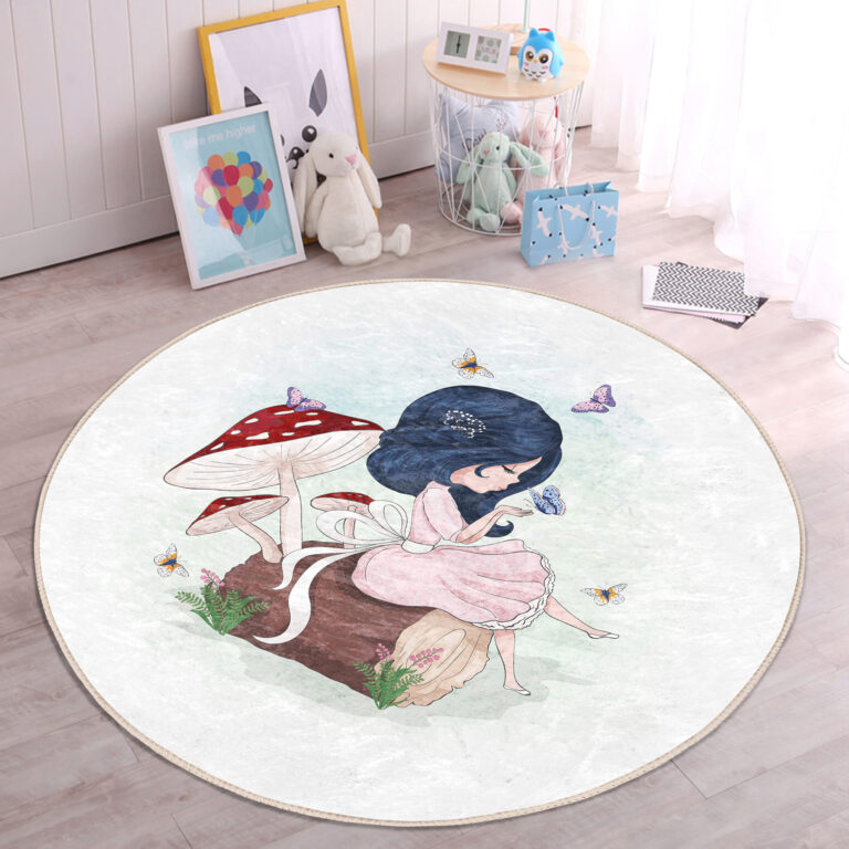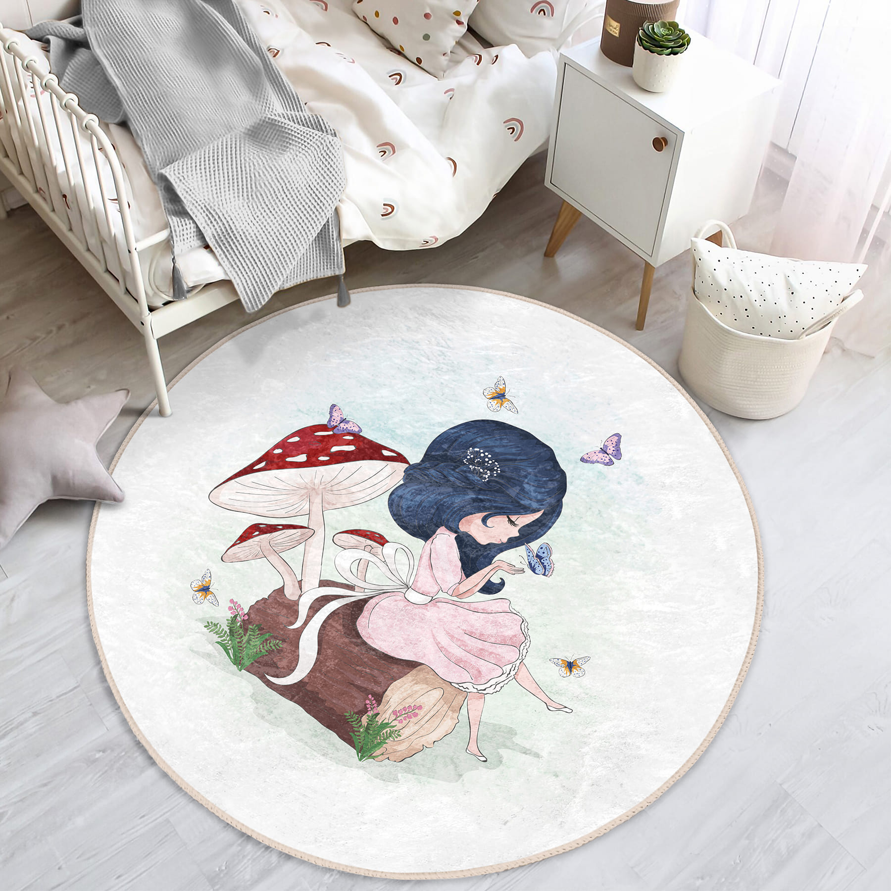 Fashion Girl Çocuk & Genç Odası Makinede Yıkanabilir Kaymaz Tabanlı Yuvarlak Kadife Halı