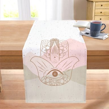 Fatma Ana Eli Motifli Dijital Baskılı Modern Dikişli Şönil Runner