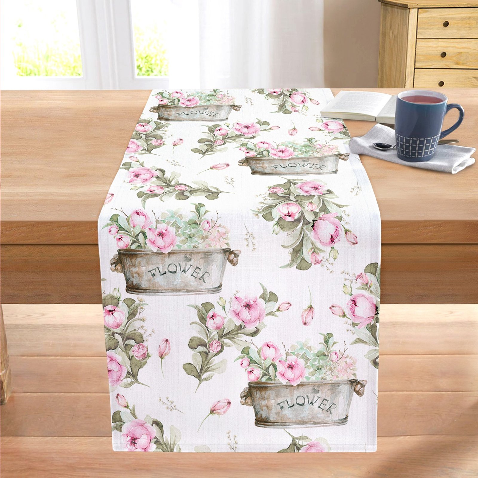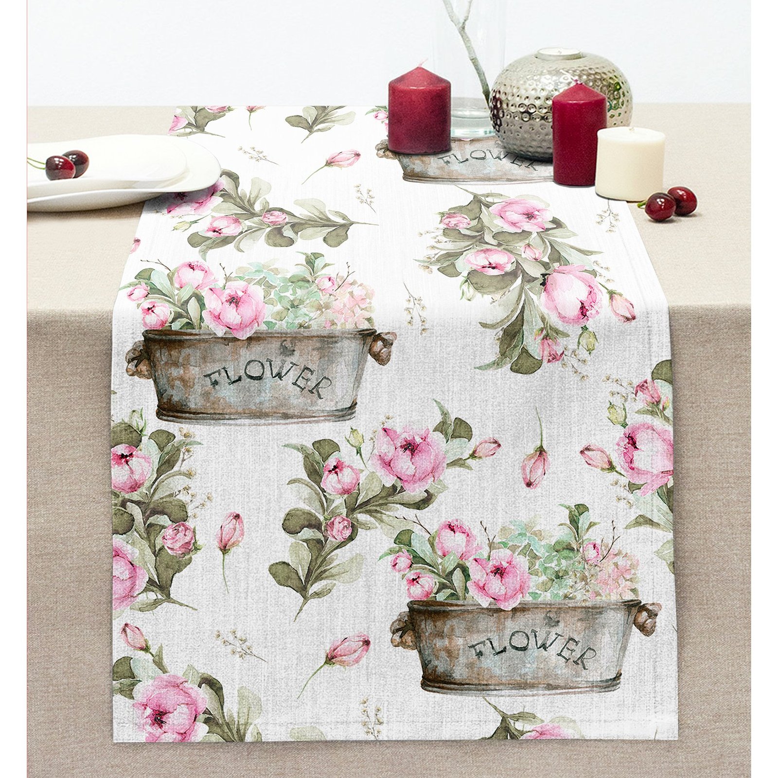 Flower & Çiçek Demetleri Özel Tasarım Dijital Baskılı Modern Dikişli Şönil Runner