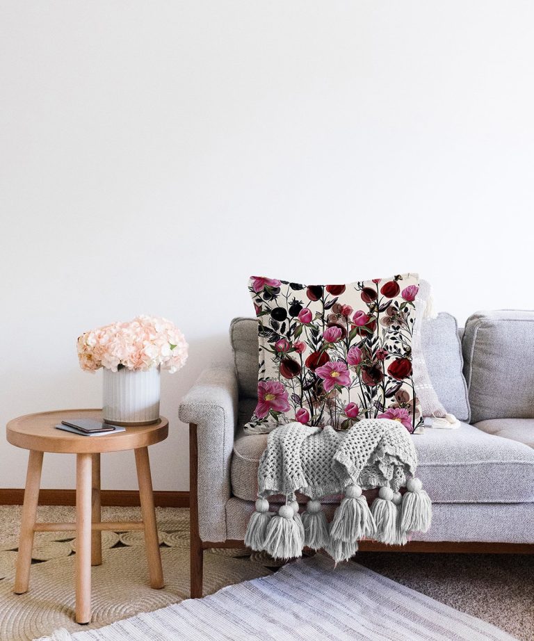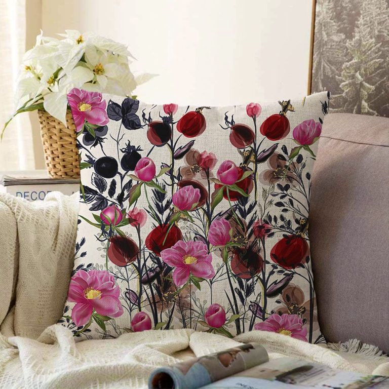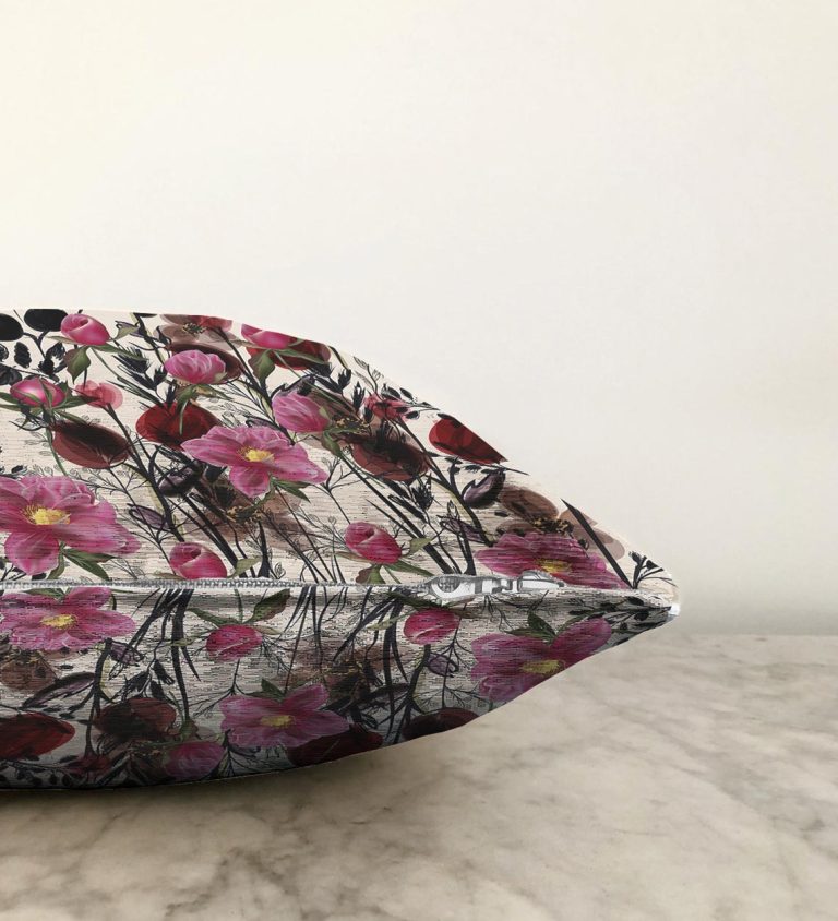 Gelincik Çiçeği Motifli Dijital Baskılı Raşel Yastık Kırlent Kılıfı