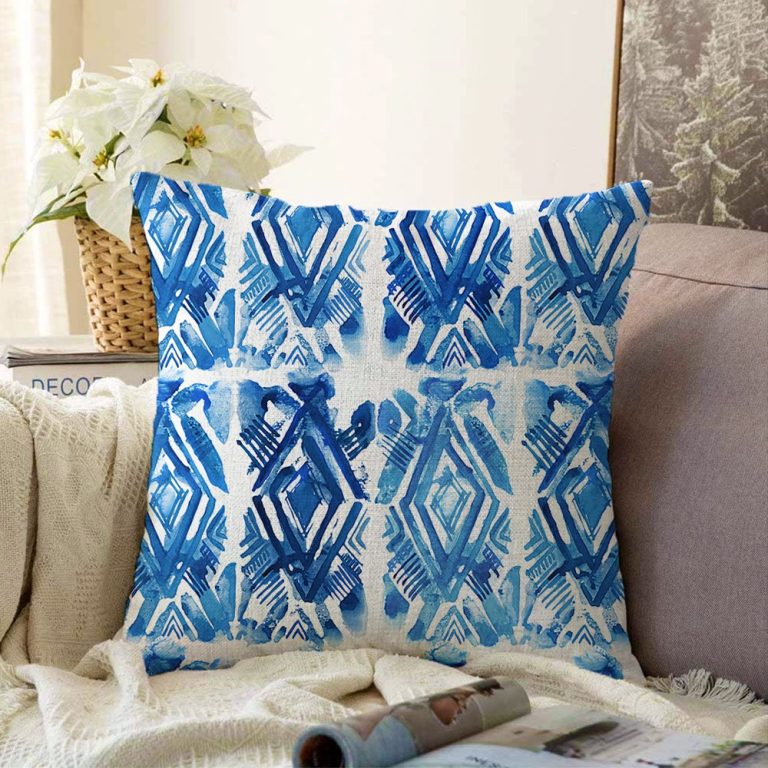 Geometrik Baklava Desenli Dijital Baskılı Modern Raşel Kırlent Kılıfı