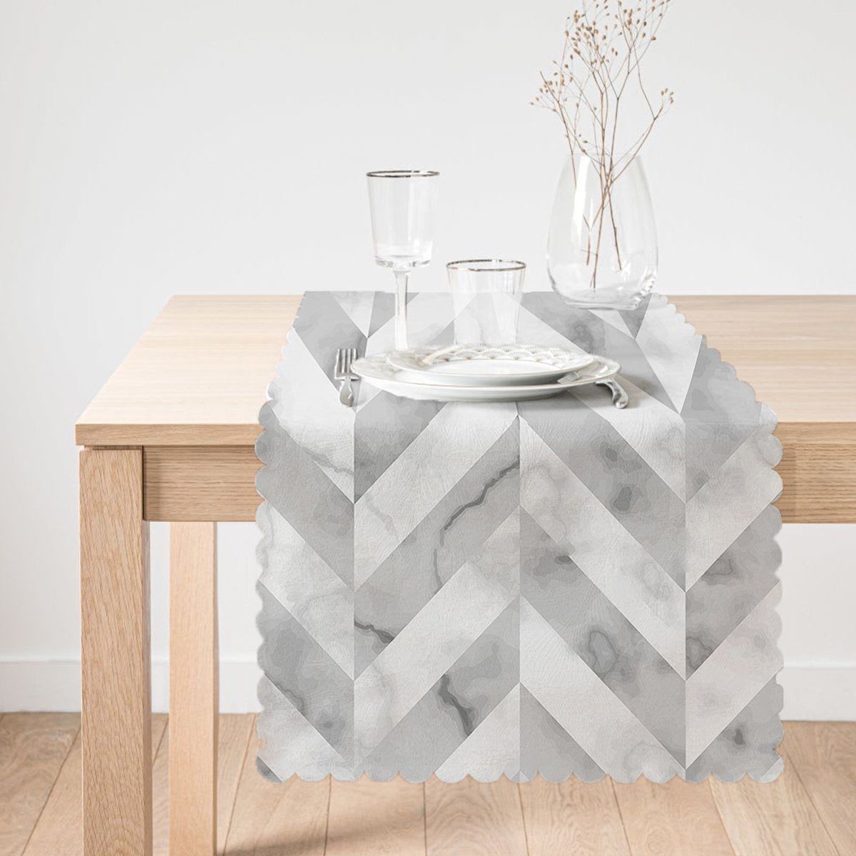 Geometrik Desenli Mermer Zeminli Modern Özel Tasarım Runner