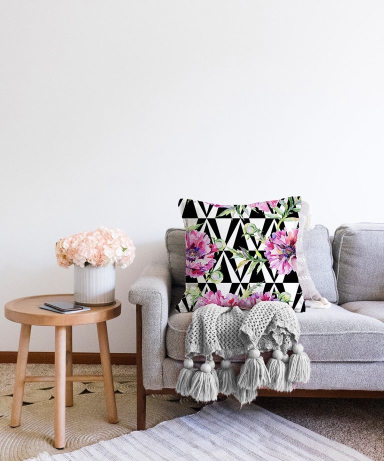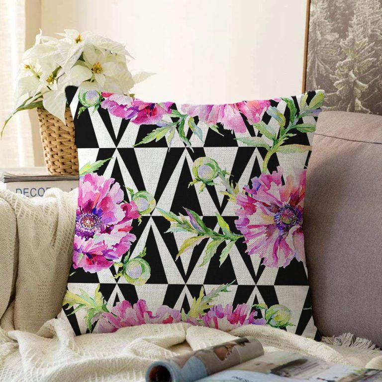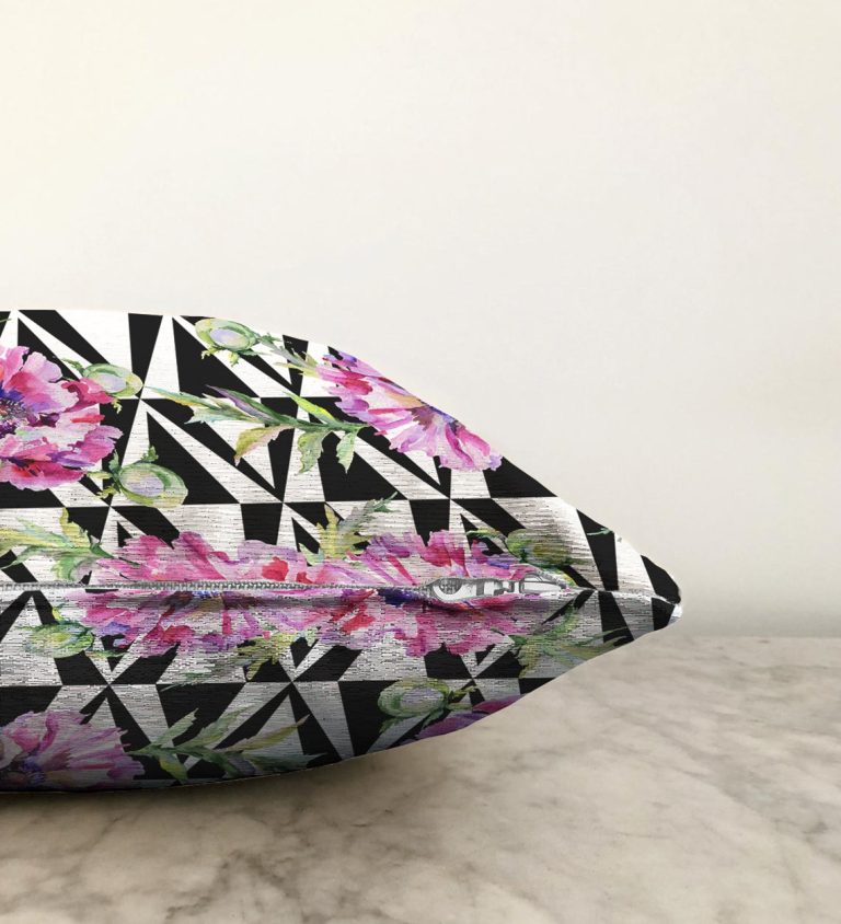 Geometrik Elmas Çizimli Dijital Baskılı Raşel Yastık Kırlent Kılıfı