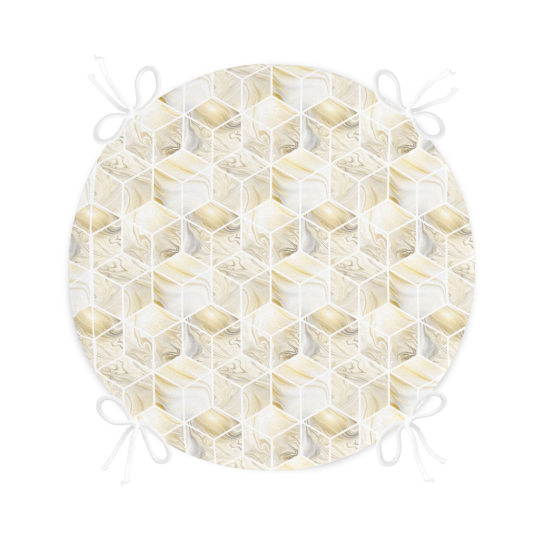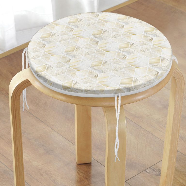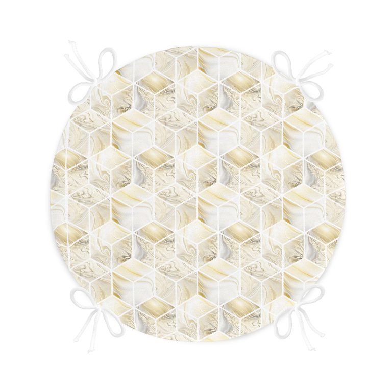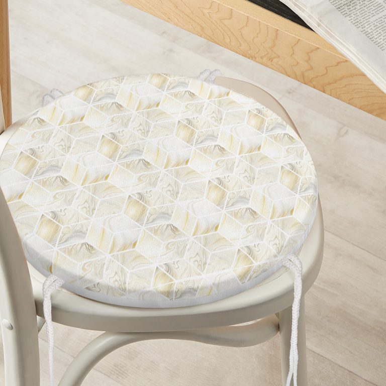 Geometrik Mermer Zeminli Modern Yuvarlak Fermuarlı Sandalye Minderi