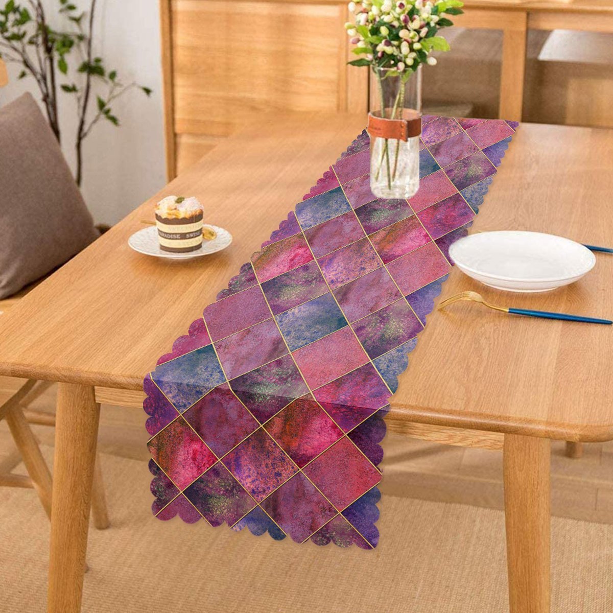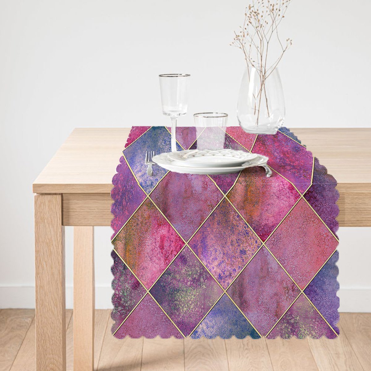 Geometrik Pudra Renkler Modern Tasarımlı Dekoratif Özel Tasarım Runner